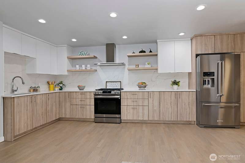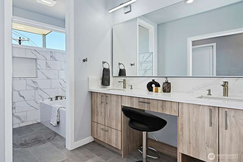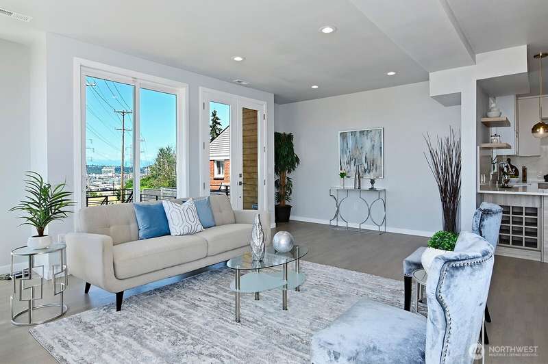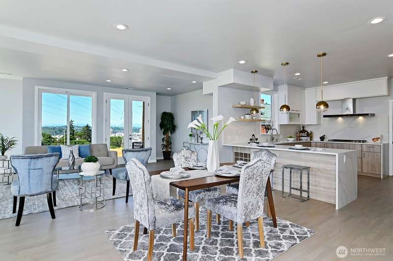 Gorgeous 4Br/3Ba new construction with a permitted 2Br/1Ba ADU awaits. Spacious living area features gas fireplace and large windows with unobstructed views, stylish cabinets & Décor S/S appliances adorned ample kitchen, breakfast counter, formal dining, well-appointed bath and oversized office rounds out the main floor. Luxurious primary suite offers Olympic Mountains, city and water views, sumptuous 5-piece bath with jetted tub, huge walk-in designer closet system, trendy electric fireplace and private balcony. Separate entrance to self-contained lower level ADU where you will find a second kitchen, laundry & storage. Notable highlights include central AC, touchless kitchen faucet, LTECH bath mirror, multi-level deck and fenced side yard.