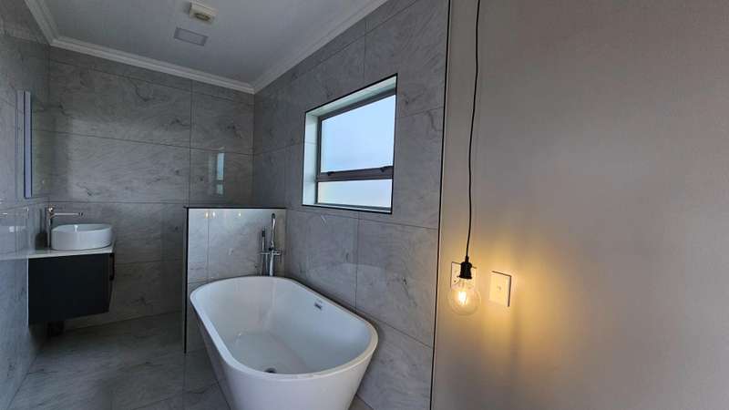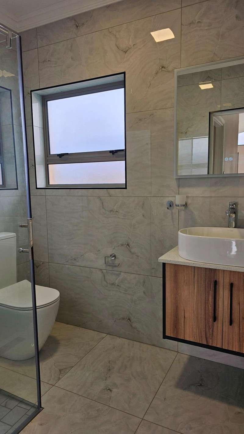 Outside this beautiful home upon your glass door exit from your lounge there's a built-in braai area for those Saturday family meet ups and well paved chilling spot, this lovely outside area is paved all round with green grass,