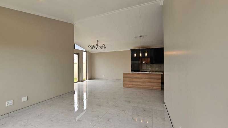 Located in the most popular new development in Secunda, The Ruby. Be the first to own this newly built home, offers 3 bedrooms, 2 bathrooms, one is an ensuite in the main bedroom neatly tiled throughout, ample space for double bed and pedestals. An open plan kitchen that sees through spacious lounge and dining area and a double garage.