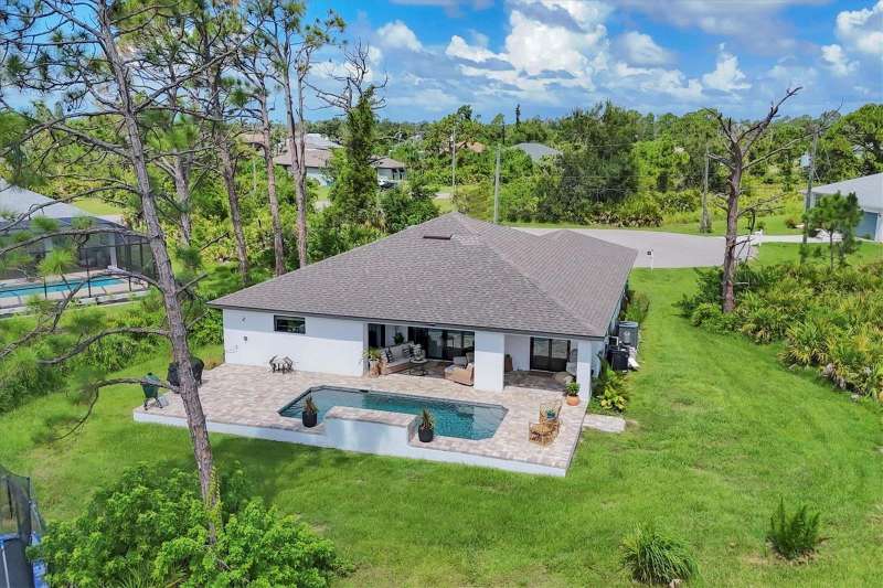 BEST DEAL IN ROTONDA LAKES! “Gem Retreat” – A Quality Custom-Built Pool Home with Smart Features! Don’t wait to build when you can move right into this stunning 3-bedroom, 2-bathroom custom pool home that has it all! Offering exceptional value and modern upgrades, this home truly stands out as the best deal in Rotonda Lakes. Step inside and you’ll immediately appreciate the spacious open floor plan, 10-foot ceilings, and elegant tile flooring that create a bright, inviting atmosphere—perfect for entertaining or relaxing in style. ? Highlights Include: • Resort-Style Pool with Smart Controls: Enjoy year-round comfort with a heated and chilled AOP (Advanced Oxidation Process) pool system, new pump, and Wi-Fi control right from your phone! The quartz-finished pool sparkles under the Florida sun, surrounded by warm patio pavers for effortless outdoor living. There has never been a pool cage but there is a quote for your information. • Gourmet Kitchen: A true chef’s delight with a massive granite island, stainless steel appliances, custom backsplash, and plenty of cabinet space for all your culinary essentials. • Relaxing Master Suite: Your private retreat includes a large walk-in closet, corner shower, and dual vanities for comfort and convenience. • Spacious Guest Bedrooms: Two additional bedrooms share a beautifully appointed bath—ideal for family, guests, or a home office. • Elegant Touches Throughout: Crown molding, coffered ceilings, recessed lighting, and 8-foot sliders add a refined touch. Surround sound enhances your entertainment experience. • Built for Peace of Mind: Full hurricane protection with impact windows and shutters for every opening ensures safety and security year-round. • Curb Appeal & Convenience: The oversized 2-car garage, paver driveway, and lush landscaping complete this picture-perfect home on an oversized lot. Perfectly located in the heart of Rotonda Lakes, you’ll be minutes from Gulf beaches, several golf courses, top-rated fishing spots, shopping, dining, and medical facilities. Don’t miss your opportunity to own this exceptional home that delivers luxury, technology, and value all in one package—schedule your private showing today!