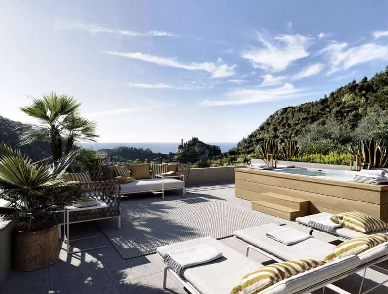 This beautifully appointed apartment is on the top floor of a luxurious new residence located in a peaceful residential neighbourhood in renowned Eze village 9 and 11 kilometres respectively from Monaco and Nice, near the shops and transport networks and the beaches, and 4.6 and 6.6 kilometres from Cap Estel and Saint Laurent respectively. Enjoying an open view of the chateau and the Mediterranean, it offers 70,70 sqm of living space and opens onto a 47,30 sqm south-east facing terrace. The superb residence benefits from a swimming pool and a gym. With a garage. Delivery in 2027. Reduced notary fees. Units: 38