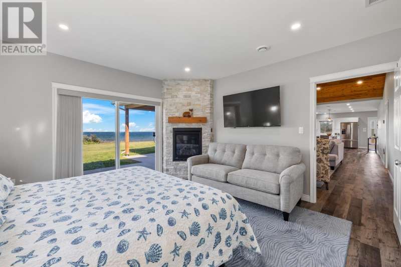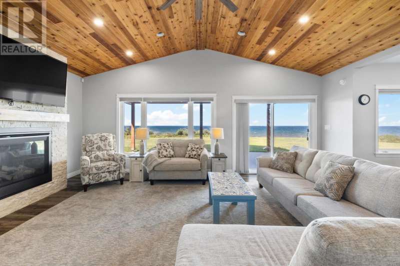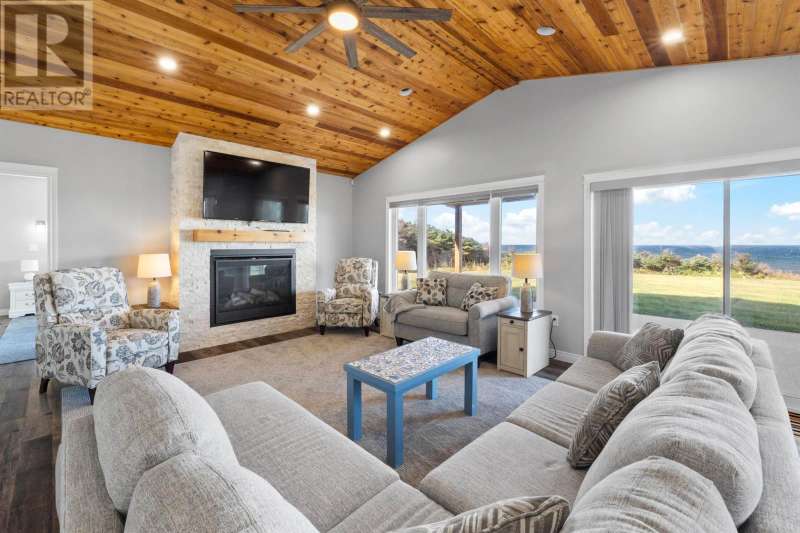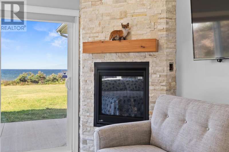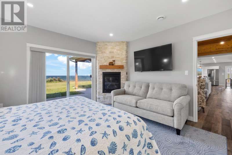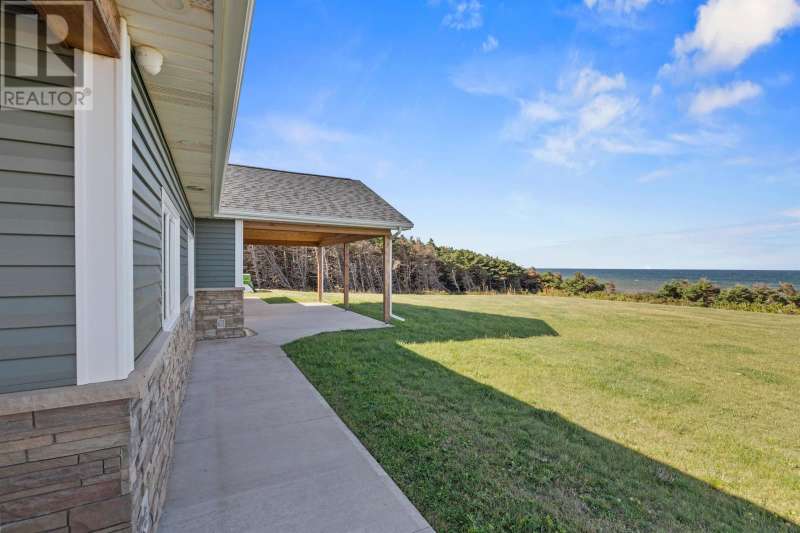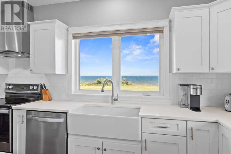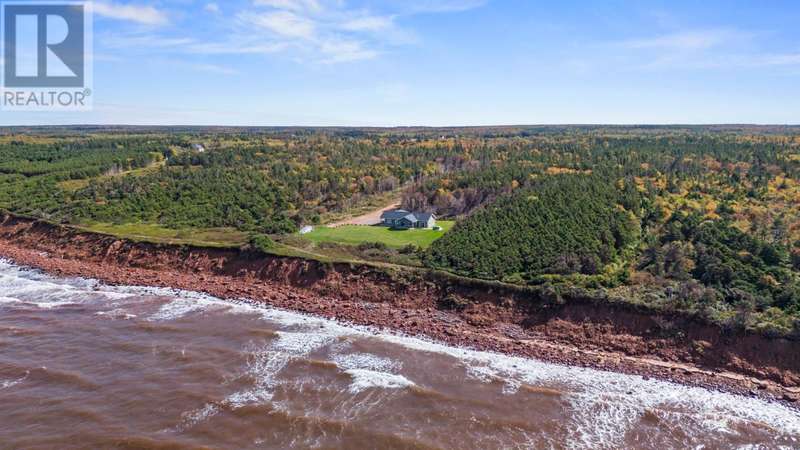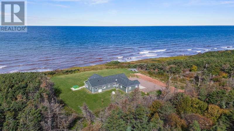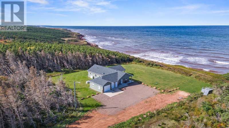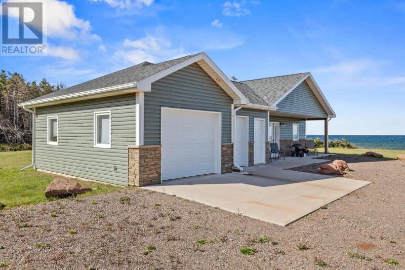 Welcome to a piece of PEI heaven. This beautiful home is nestled on a cliff, right on the ocean offering panoramic, breathtaking views of the Gulf of St. Lawerence. This beautiful, nearly new, home is nestled on 9.59 private acres & offers 193? of ocean frontage on PEI?s prestigious North Shore. Close to Souris and North Lake you are truly away from the crowd & hustle of everyday life and immersed in peace & tranquility. This 3 bedroom, 3 bath home is built with quality and superior design to create this peaceful oasis. Kitchen, living & dining rooms are open concept & feature a vaulted ceiling with floor to ceiling windows maximizing this million dollar view. The gourmet kitchen is equipped with great quality appliances, farm house style sink, large stone top Island, plenty of counter & cupboard space and a window above the sink. The cozy, spacious living room features a floor to ceiling stone propane fireplace and sliding glass doors opening onto a private covered deck facing the ocean. The primary suite is grand & gorgeous and offers a walk-in closet, another floor to ceiling stone propane fireplace, sliding glass doors opening onto a private covered deck with a brand new Hot Tub and of course, amazing views. The ensuite is equipped with an oversize glass shower, walk-in tub, stone top vanity & heated floors. The two other bedrooms are both a good size and situated between another full, bright bathroom with heated floors. All bedrooms offer great storage & closet space. The garage is oversized, heated, attached and opens onto the laundry room & half bath. Outside of this beautiful home, the quality & pride of ownership continue with a french drain, geomatting, RV hook-up, Generac generator and a full set of aluminum stairs to access your very own private beach. This property comes complete with all the furniture, appliances, BBQ with gas hook-up, alarm system, security cameras, ducted heat pump and an air exchanger. This t (id:2471)