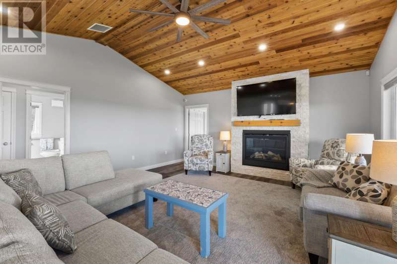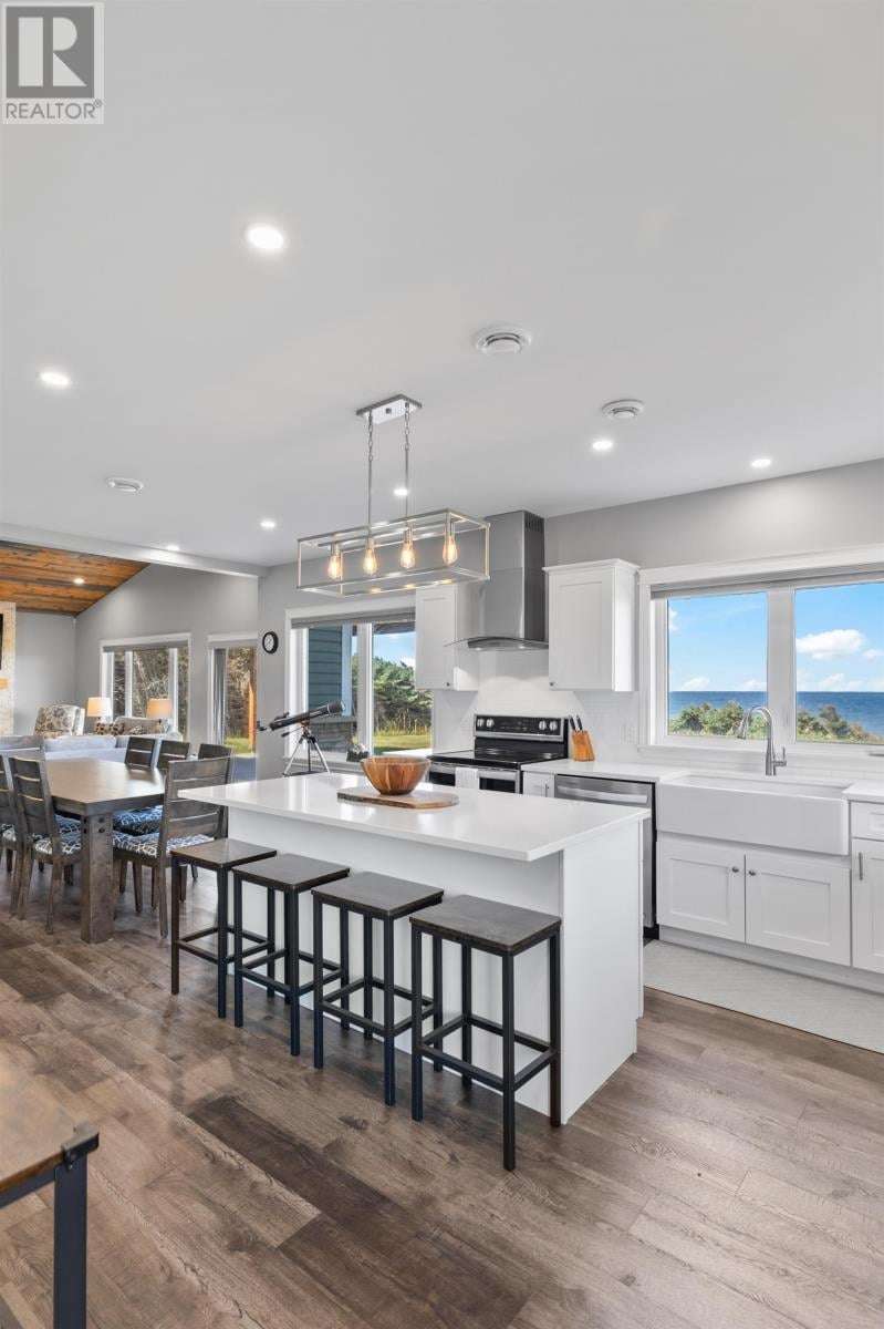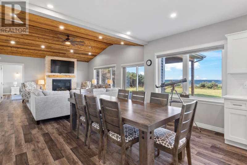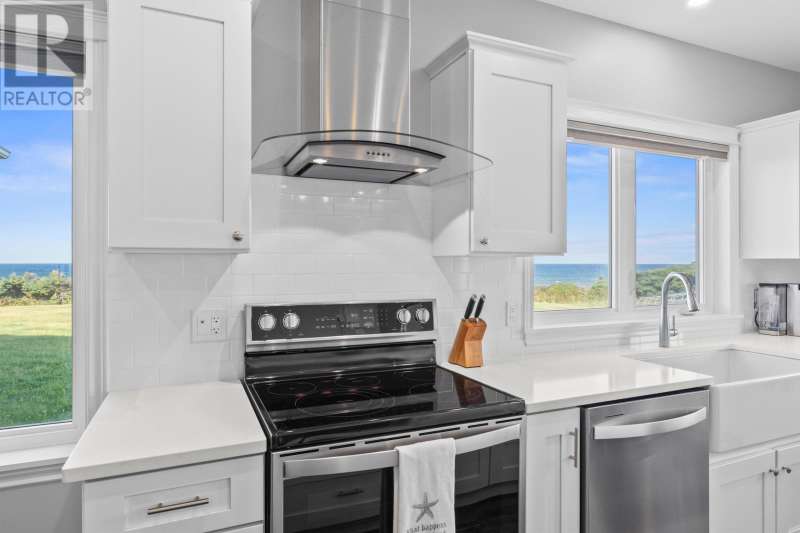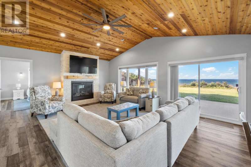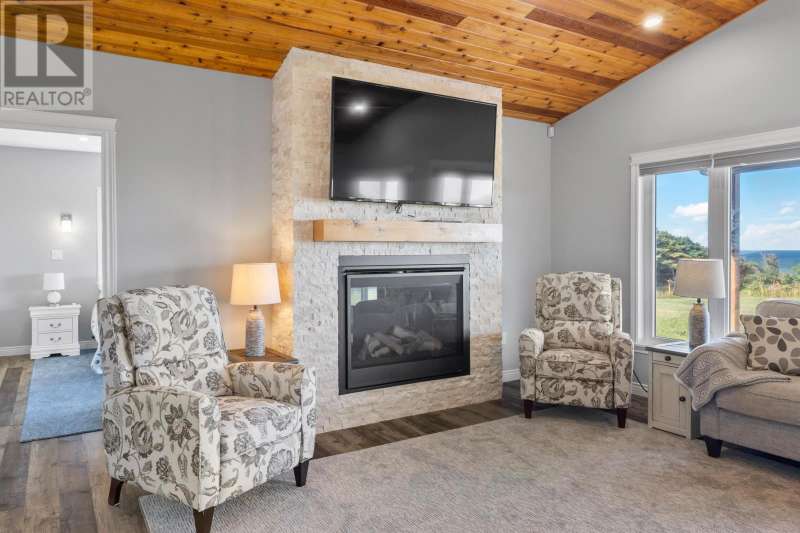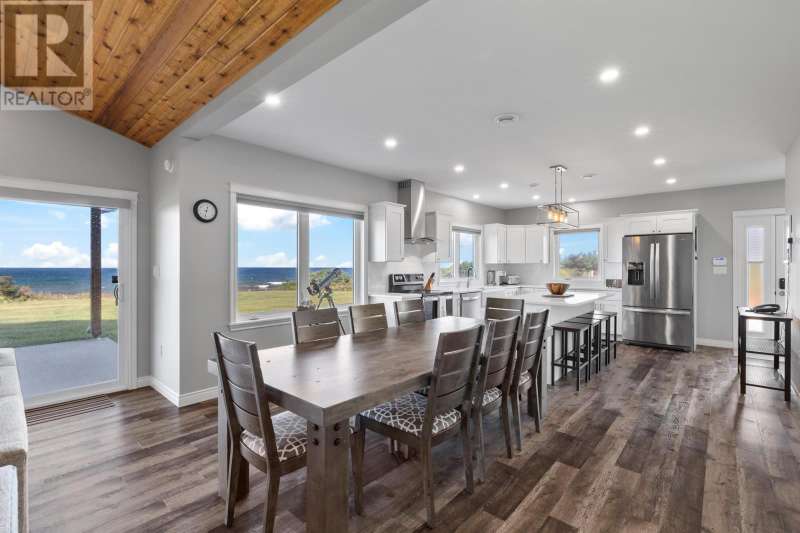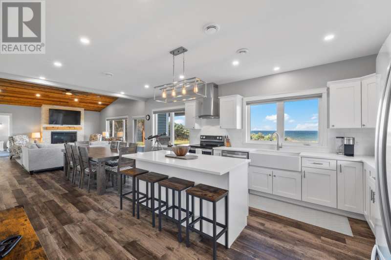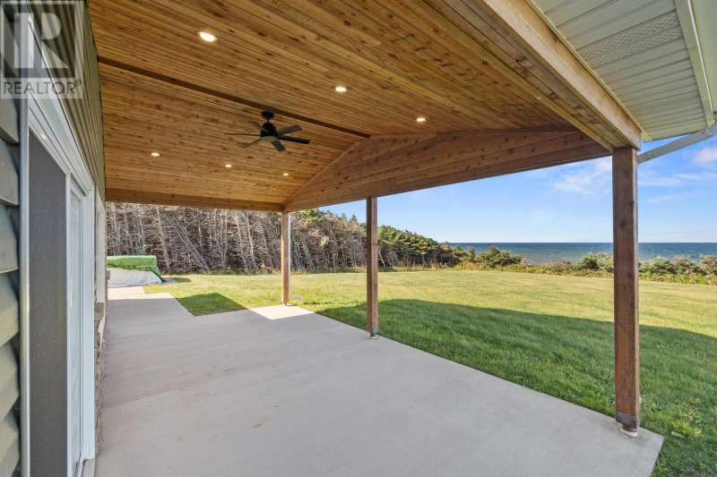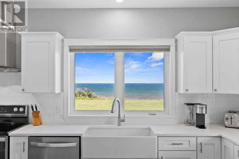 Welcome to a piece of PEI heaven. This beautiful home is nestled on a cliff, right on the ocean offering panoramic, breathtaking views of the Gulf of St. Lawerence. This beautiful, nearly new, home is nestled on 9.59 private acres & offers 193? of ocean frontage on PEI?s prestigious North Shore. Close to Souris and North Lake you are truly away from the crowd & hustle of everyday life and immersed in peace & tranquility. This 3 bedroom, 3 bath home is built with quality and superior design to create this peaceful oasis. Kitchen, living & dining rooms are open concept & feature a vaulted ceiling with floor to ceiling windows maximizing this million dollar view. The gourmet kitchen is equipped with great quality appliances, farm house style sink, large stone top Island, plenty of counter & cupboard space and a window above the sink. The cozy, spacious living room features a floor to ceiling stone propane fireplace and sliding glass doors opening onto a private covered deck facing the ocean. The primary suite is grand & gorgeous and offers a walk-in closet, another floor to ceiling stone propane fireplace, sliding glass doors opening onto a private covered deck with a brand new Hot Tub and of course, amazing views. The ensuite is equipped with an oversize glass shower, walk-in tub, stone top vanity & heated floors. The two other bedrooms are both a good size and situated between another full, bright bathroom with heated floors. All bedrooms offer great storage & closet space. The garage is oversized, heated, attached and opens onto the laundry room & half bath. Outside of this beautiful home, the quality & pride of ownership continue with a french drain, geomatting, RV hook-up, Generac generator and a full set of aluminum stairs to access your very own private beach. This property comes complete with all the furniture, appliances, BBQ with gas hook-up, alarm system, security cameras, ducted heat pump and an air exchanger. This t (id:2471)