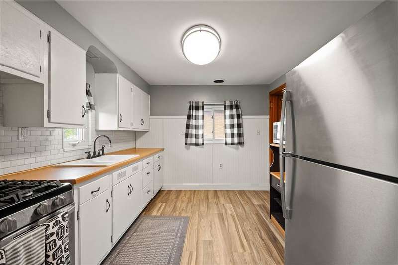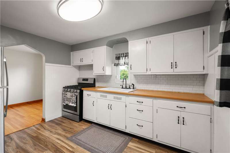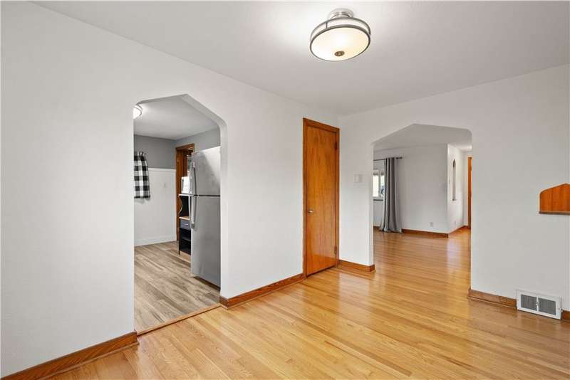 Welcome to this charming level-entry ranch offering 1,072 sq. ft. of comfortable living space. Step inside to an ample-sized living room with a picture window, filling the home with natural light, and enjoy the beauty of refinished hardwood floors throughout. The layout includes a formal DR and a kitchen with updated appliances, making everyday living and entertaining a breeze. The home features generously sized bedrooms and an updated bath with a walk-in shower. Additional highlights include a newer roof and a front covered porch, perfect for relaxing. Outside, you'll appreciate the level rear yard and concrete drive leading to a rear-entry tandem garage. The large basement with a half bath offers endless possibilities for a game room, home office, or additional living space. Updated A/C, garage door, freshly painted. Conveniently located with easy access to Route 43 and close to shops and transportation, this home truly combines comfort, function, and potential?all in one!