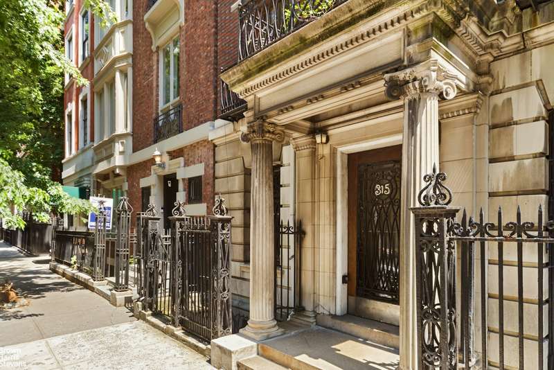 315 West 92nd with its sister building 313 were designed and built in 1906 as a pair of single family homes by noted architect Joseph H. McGuire (Church of St. Malachy - The Actor's Chapel - and Church of the Holy Trinity at West 82nd Street). Per Symmetrically organized facades are faced in red brick, laid up in Flemish bond with ironspot headers above a limestone base. The rusticated limestone ground story has a limestone central entrance portico supporting a balcony with a wrought iron balustrade. There is a copper covered mansard roof with three copper clad pedimented dormers.