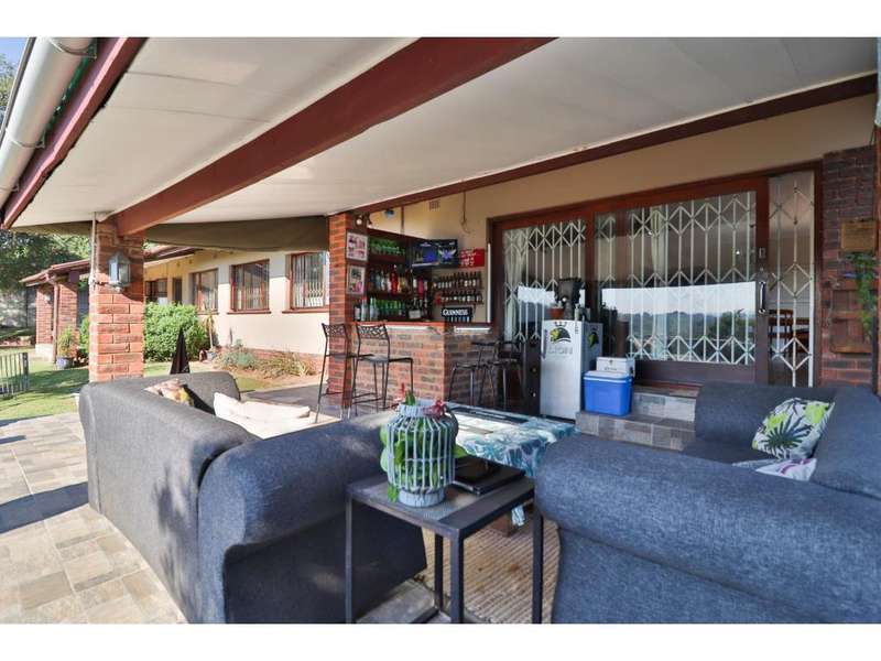 STUNNING HOME NEW ON MARKET WITH 2 GRANNY FLATS GENERATING AN EXTRA INCOME.... This newly listed home in Sarnia offers a combination of comfort, convenience, and income potential. Nestled in the tranquil surroundings of Paradise Valley, it boasts a prime location at the end of a cul-de-sac. As you step inside, you're greeted by an expansive undercover entertainment area, complete with a built-in bar, ideal for hosting gatherings while enjoying picturesque views of the pool and beyond. The interior features fully tiled floors, complemented by burglar guards and trellidoors for added security. The spacious open-plan layout seamlessly connects the lounge and dining area, flowing into a modern, fully equipped kitchen that's plumbed for a washing machine. With three bedrooms, all equipped with built-in cupboards, and a family bathroom offering the convenience of a shower and bath, the home caters to comfortable living for the whole family. Plus, there are numerous additional features that enhance its appeal. What truly sets this property apart is the inclusion of two self-contained granny flats, each generating an extra income of R5,500. Additionally, there's a teen pad comprising a single room with its own toilet and shower, providing further rental potential. Convenience is key with fully automated gates and ample parking space, ensuring ease of access and accommodation for residents and visitors alike. This home offers a blend of luxury, practicality, and investment opportunity, making it an enticing prospect for prospective buyers. Contact Soloshini for a viewing....