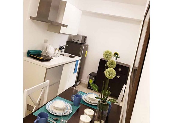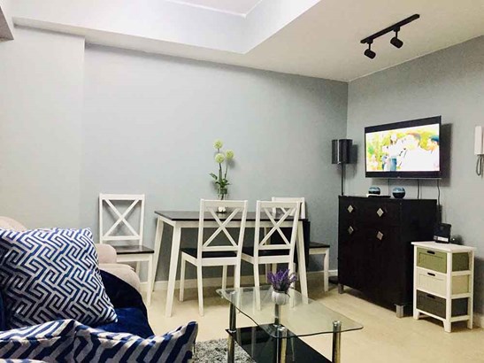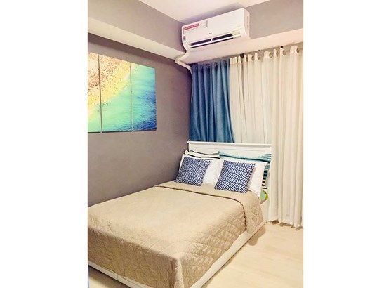 This two-bedroom condo for sale is located in the development's Maldives Tower, and faces the amenities area, including Azure's man-made beach. It is fully furnished and comes with one parking slot.