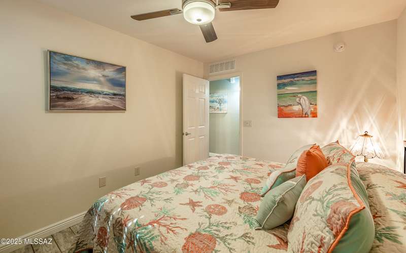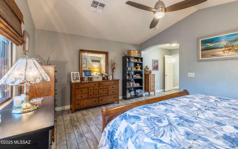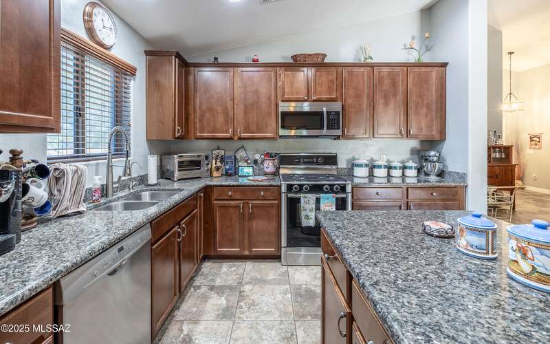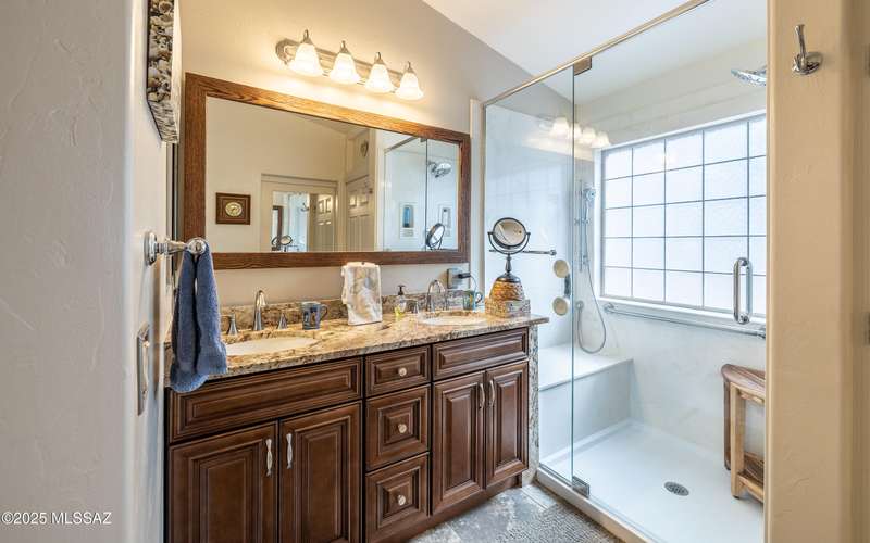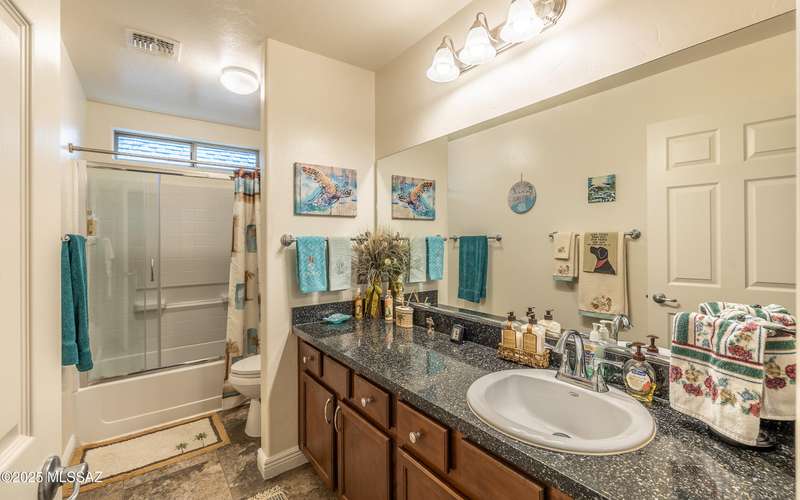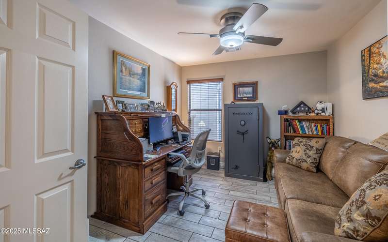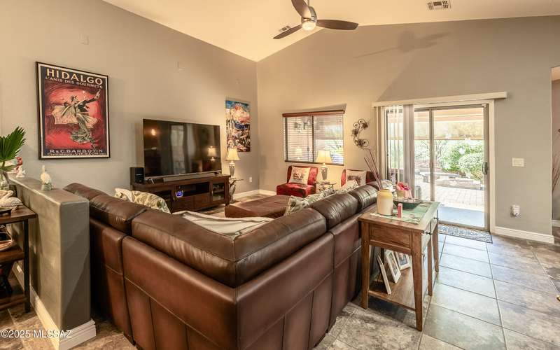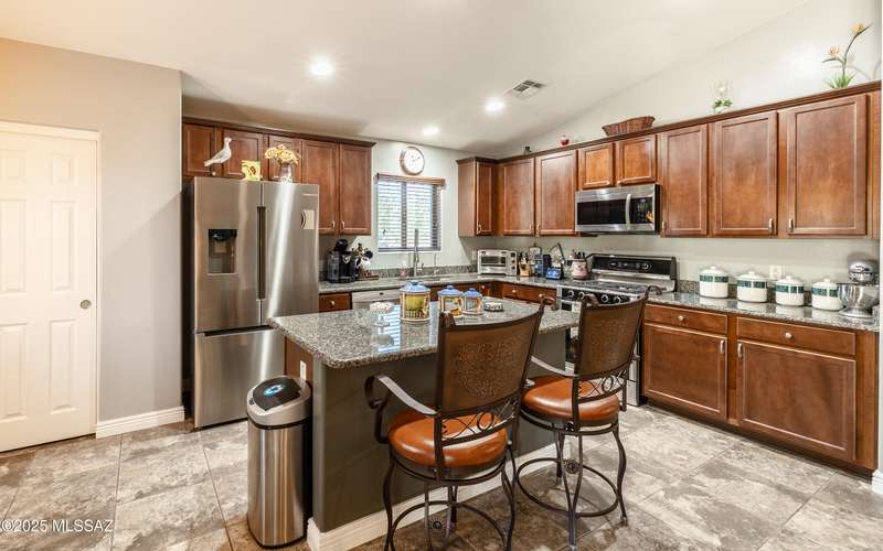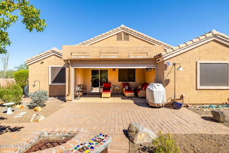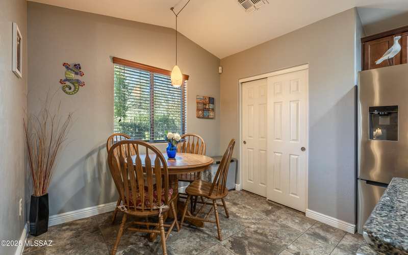 1,954 sq ft home on a .58-acre lot in Sycamore Canyon, Vail/Corona de Tucson. Features 3 bedrooms, an office that can convert to a 4th bedroom, and a private dining room that can be used as a den. Includes vaulted ceilings, open floor plan, new 5'' base boards throughout, new porcelain tile in bedrooms and dining room, newly added soft-close cabinets with updated hardware, stainless slide-outs in most under-counter kitchen cabinets, New Bosch refrigerator, all Bosch appliances, chandelier, all windows have solar screens, and window insert in the primary bedroom. Bathroom offers a newly installed executive-height dual vanity with modern mirrors, upgraded fixtures, towel and paper holders, and a walk-in shower with full-width bench, dual showerheads, and niches. Equipped with a 22kW Generac