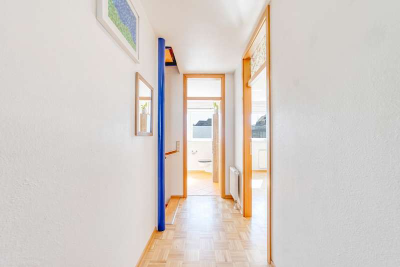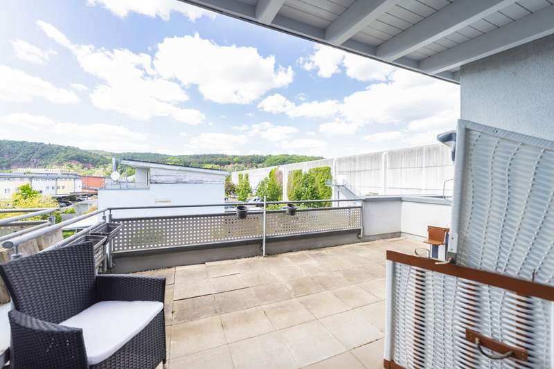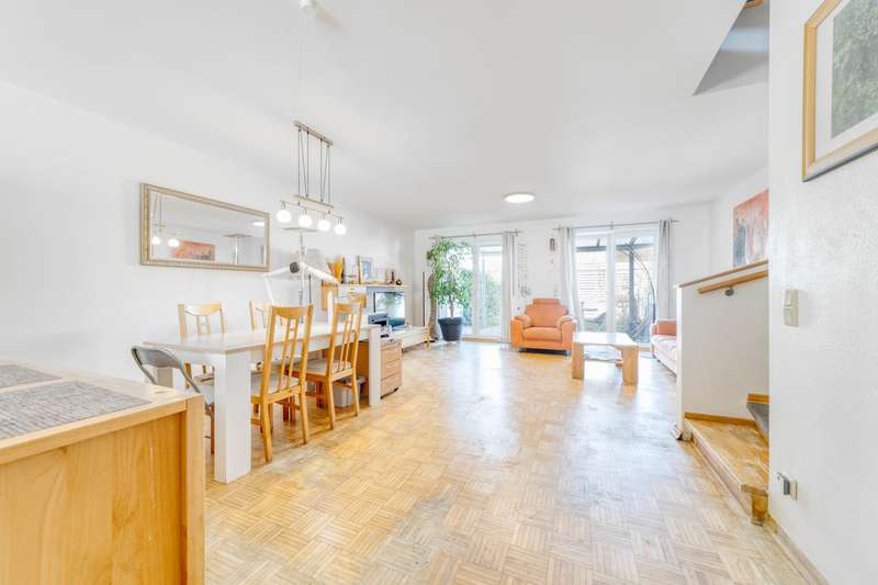 Von Poll Immobilien Trier is pleased to present this charming mid-terrace house in a pleasant residential area. Built in 2002, the property impresses with a family-friendly floor plan, around 139 m² of living space and a plot of approx. 181 m² - ideal for couples or families looking for a home with potential for individual design. The spacious living and dining area on the first floor offers a pleasant feeling of space. The mosaic parquet flooring laid there gives the room a warm feel, but was partially affected by water damage that has since been fully repaired. The deliberate decision not to replace the flooring gives future owners the opportunity to design the living area according to their own taste - be it with parquet, vinyl, tiles or other materials. The open-plan kitchen is directly adjacent to the living area and is equipped with Bosch electrical appliances. An adjoining storage room provides additional storage space and short distances. A highlight of the first floor is the covered terrace with glass elements, which offers a view of the well-tended garden. Here you can enjoy the outdoor area in almost any weather. A garden shed provides additional storage space. Two bright bedrooms, also with mosaic parquet flooring, a shower room and another practical storage room await you on the second floor. Another highlight is located on the second floor: an additional, spacious room with access to the sunny roof terrace offers you a special retreat with lots of charm - ideal as a bedroom, work area, guest room or individual feel-good room. A bathroom with bathtub and a practically integrated storage room complete the comfortable space on this floor. Heating is provided by a modern gas central heating system with integrated hot water supply. Underfloor heating provides additional comfort in the bathroom with shower on the 1st floor. High-quality plastic windows with insulating glazing ensure good energy efficiency and light-flooded rooms. A carport right next to the house offers a sheltered parking space for your vehicle. We look forward to receiving your inquiry and will be happy to arrange a personal viewing for you.