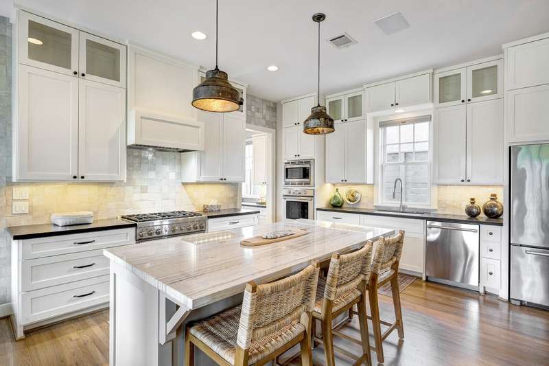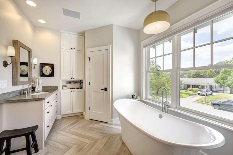 Modern Craftsman in sought-after Timbergrove Manor, custom-designed by renowned Houston architect Kelly Cusimano, blends architectural elegance w/thoughtful functionality. Light-filled interior w/abundant windows overlooking a tranquil garden & no carpet throughout. Versatile front room off entry for formal living, dining, or study, complemented by butler’s pantry, wet bar & mudroom. Chef’s kitchen w/high-end appliances open to dining & living areas for easy entertaining. Primary suite w/built-ins, walk-in closet & bath w/soaking tub & separate shower. 4 additional bedrooms, 3 secondary baths, plus downstairs flex room w/bath offer great options for family/guests. Enjoy a backyard retreat w/covered patio, fireplace & built-in grill. New whole-house Generac generator & large two-car garage w/storage add convenience. Situated in a quiet cul-de-sac neighborhood w/minimal through traffic, this home offers peace & privacy, plus access to hike & bike + White Oak Bayou trails. Per seller.