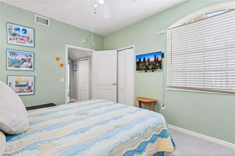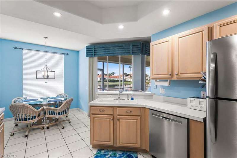 ALREADY BOOKED FOR JAN-MARCH 2026! AVAILABLE FOR APRIL 2026 FOR $5000 + 11.5% SALES TAX. $1500 SECURITY DEPOSIT & $150 EXIT CLEANING FEE. This 2 bedroom +den (which offers 2 twin beds),it is a 3 BEDROOM. A COASTAL PARADISE is just waiting for you !UTILITIES, INTERNET AND WATER, CABLE INCLUDED! Relax on your screened in lanai after a long day on the sugar sand beaches and take in the warm sunsets reflecting off of the serene lake and watch the wildlife each evening. You will never want to leave this place! Primary bedroom has a king bed and the ensuite bath has a separate soaking/zen tub and walk in shower. 2nd bedroom has a queen bed. 2nd full bath has tub/shower combo. Prepare your meals and dine overlooking the lake! WALKING DISTANCE TO THE FABULOUS COMMUNITY POOL/SPA! BBQ area by the pool!Laundry in residence.1 car garage.NO PETS, NO SMOKING, NO MEMBERSHIP AVAILABLE TO PRIVATE CLUB.