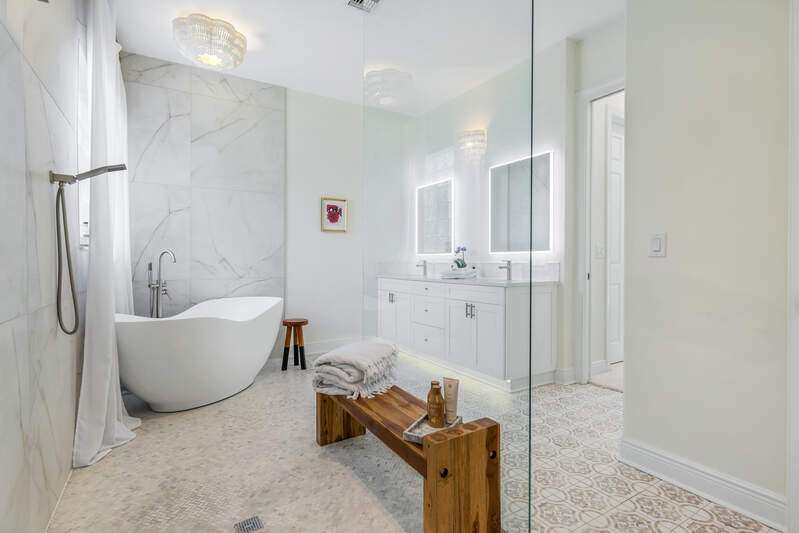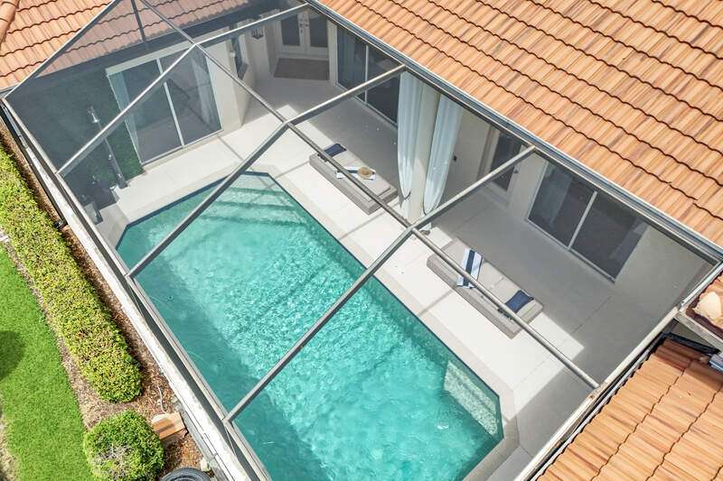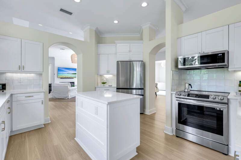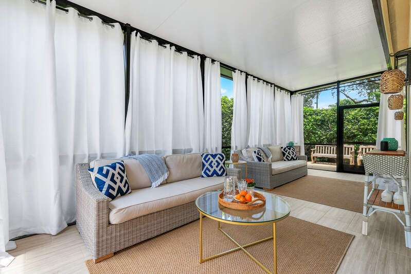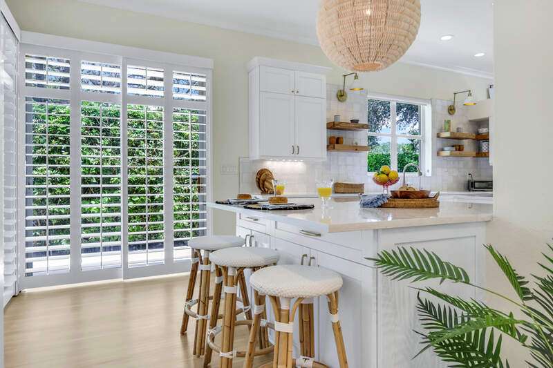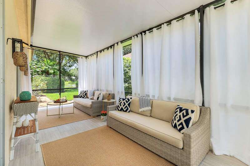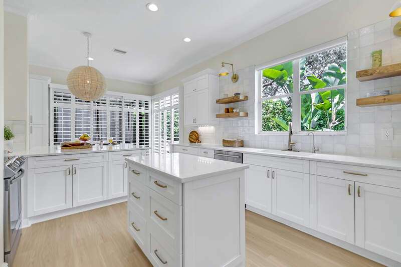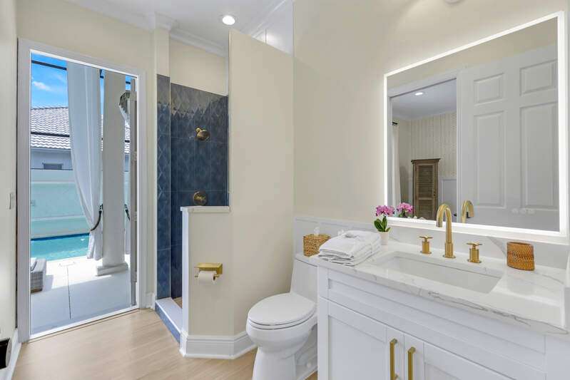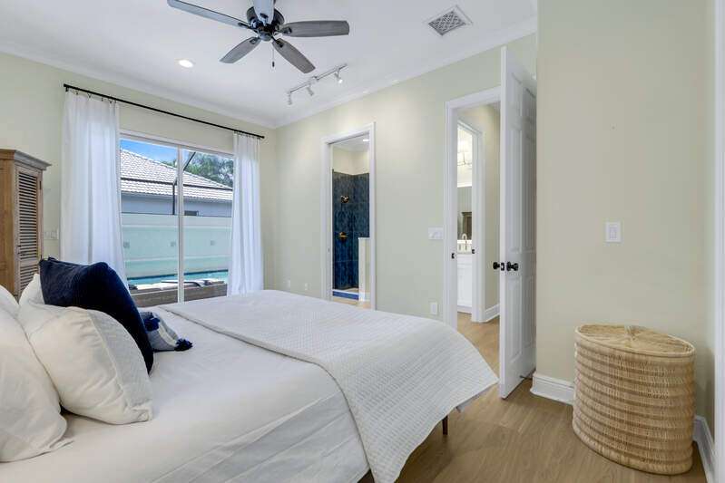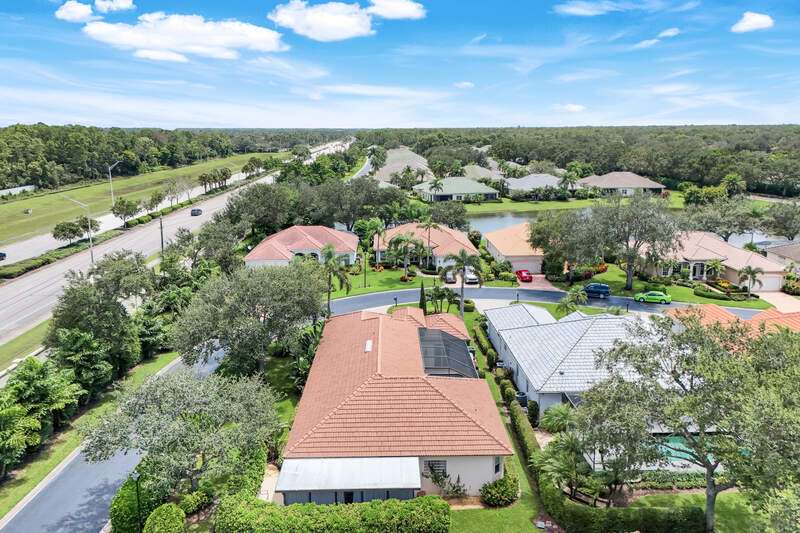 Set on a corner lot, this impressively recently renovated residence in Augusta Falls at The Vineyards captures the essence of coastal elegance with thoughtfully curated finishes including Serena and Lily and Restoration Hardware light fixtures. Inside, floors reminiscent of sandy Gulf beaches set the tone for a stylish, inviting interior, while soft white curtains flow throughout, lending an airy, relaxed feel to every space. The sprawling gourmet kitchen, with quartz countertops, and nearly new high end appliances is a showpiece, featuring an island, separate breakfast bar, chic light fixtures, and eye-catching tile backsplash. Plantation shutters further enhance the home's coastal character. The great room centers around a striking fireplace with shiplap wall detail, while the primary suite feels like a five-star resort, with private lanai access and a spa-like ensuite bath, with a solid surface soaker tub, wet room shower that looks straight out of an interior design magazine. This well maintained home offers two screened lanais, each designed to maximize indoor-outdoor living. One lanai creates a breezy retreat for lounging or dining with a lake view, while the other frames the shimmering pool with its soothing waterfall feature. White curtains add a touch of coastal romance, transforming the outdoors into a stylish, dreamlike oasis. Just beyond, a private 1-bedroom, 1-bath cabana provides the ideal space for guests, extended family, or a dedicated home office. Augusta Falls itself is a picturesque, tranquil community, greeted by cascading waterfalls at its entrance. Residents enjoy a clubhouse with a heated pool, two scenic lakes with fountains, and numerous opportunities for social gatherings. A prime central Naples location in a gated community near Vanderbilt Beach Road provides easy access to Naples beaches, restaurants, Mercato, Crossroads Marketplace and more. The stunning renovations with quality finishes, and timeless coastal style all converge in this remarkable property.
