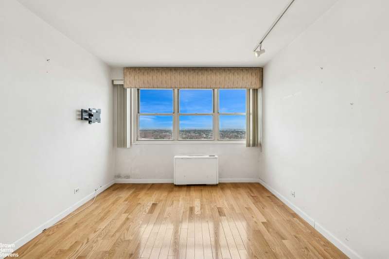Welcome to 102-30 66th Road, Unit 19D, an exceptional coop nestled in the vibrant neighborhood of Forest Hills. This stunning high-rise, post-war residence offers ; approximately 1,150 square feet of Solo-level living space, providing a refreshing blend of comfort and style. With 5 rooms, including 2 spacious bedrooms and 2 modern bathrooms, this is a place that truly embraces urban living at its finest. You'll be captivated by the breathtaking southwest-facing views that fill the home with natural light by day and offer a glittering panorama of the city skyline by night. Enjoy the tranquility of your private terrace, an ideal spot for sipping your morning coffee while catching the sun's first rays or watching the sunset over the cityscape. Step inside and feel instantly at home in the tastefully designed living room, which serves as a welcoming centerpiece for relaxation and entertaining. The home's cooling system, which features central air, ensures comfort throughout every season. The building itself is equally impressive, boasting a full-time doorman for added convenience and peace of mind. You'll find a host of amenities tailored to modern living, including a lush courtyard, garage, lounge, and outdoor playground and heated inground pool designed to offer both relaxation and recreation right at your doorstep. Forest Hills is known for its charming streets, rich in parks and lush green spaces, alongside a myriad of dining and shopping destinations. The building's prime location provides easy access to public transportation, making commutes a breeze and connecting you effortlessly to all that New York City has to offer. Pet-friendly and set within a community-oriented setting, this residence is waiting for you to explore its potential. Don't miss the opportunity to make Unit 19D your new home. Schedule a showing today and experience firsthand the allure and convenience of this magnificent property.