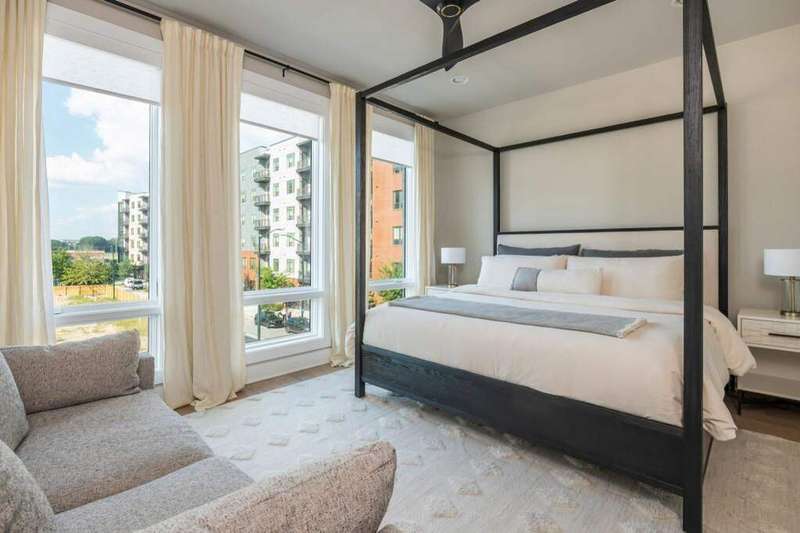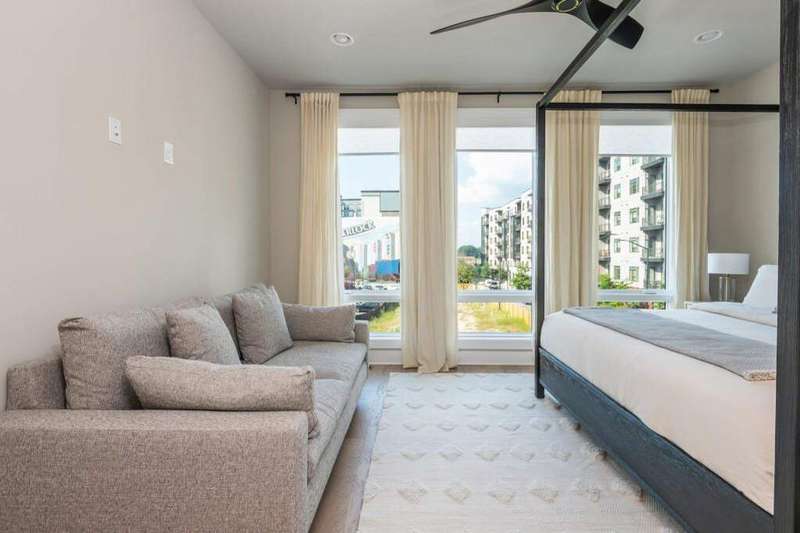 Welcome to your stylish, fully furnished retreat in the heart of West Midtown Atlanta! This modern 3-bedroom, 2.5-bath townhouse offers the perfect blend of luxury, comfort, and convenience - located just steps away from The Interlock, Westside Provisions District, and some of the city's best dining, shopping, and nightlife. Inside, you'll find a spacious open-concept living area with designer furnishings, hardwood floors, and oversized windows that fill the space with natural light. The gourmet kitchen features stainless steel appliances, quartz countertops, a large island with seating, and fully stocked cookware - ready for any home chef. Upstairs, the primary suite includes a plush king bed, walk-in closet, and spa-inspired en-suite bath with a double vanity and glass shower. An additional bedroom with a full bath and closet on the opposite side of the primary, complete the upstairs. All rooms are thoughtfully decorated for comfort and style. A half bath is conveniently located on the main level for guests. Additional features: attached 2 car garage + driveway parking, two private outdoor patios off the living room and dining room, washer & dryer, high speed wifi and TV's. All utilities included. Easy access to GA Tech, Midtown, I-75 & more.