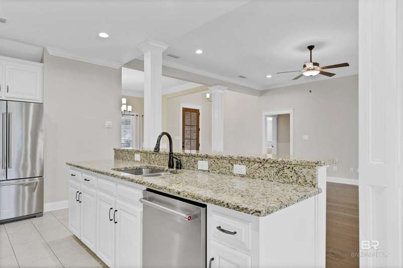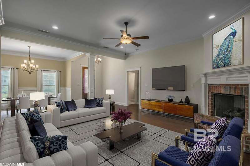 Don't Miss This Deal! A TRUE Truland Home. Don't miss this amazing deal on this stunning brick home in the desirable Old Battle Village neighborhood of Point Clear. Motivated Seller with, by far, the lowest price in the neighborhood - Move-In Ready! ideally located near Downtown Fairhope, the bay, shopping, and everything Fairhope and Point Clear have to offer. With its timeless curb appeal, low-maintenance brick and vinyl exterior, and Gold Fortified construction, this home offers both style and savings?thanks to energy-efficient HVAC, windows, and insulation.As you step inside, you'll immediately notice the attention to detail with gorgeous hardwood floors, elegant moldings, and an abundance of natural light pouring through large windows. The formal dining room, adorned with wainscoting and a beautiful chandelier, is a true statement space. The great room, featuring a gas log fireplace, offers views of the back porch and a large, privacy-fenced backyard?perfect for outdoor enjoyment.The gourmet kitchen is a chef's dream, boasting granite countertops, stainless steel appliances, custom cabinetry, and a spacious pantry. The oversized primary suite is a private retreat with a large bath featuring a double vanity, soaking tub, walk-in shower, and private water closet. Don't miss the incredible walk-in closet! On the opposite side of the home, two bedrooms share a Jack and Jill bath with a double vanity and a separate room for the shower and toilet. Upstairs, you'll find another spacious ensuite bedroom with a full bath, offering additional privacy for guests or family.Additional highlights include abundant storage, an oversized attached double garage, and proximity to all the best of Fairhope and Point Clear. New fortified roof installed in July. This beautiful home has it all?don't miss your chance to make it yours. Call today to schedule your private tour! Buyer to verify all information during due diligence.