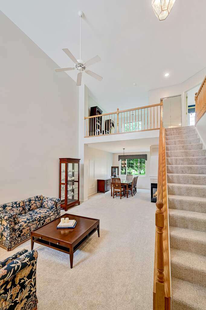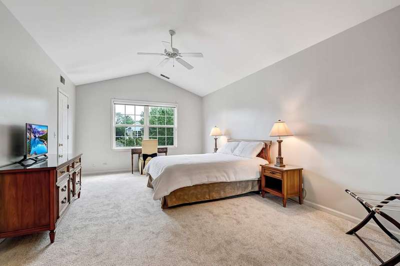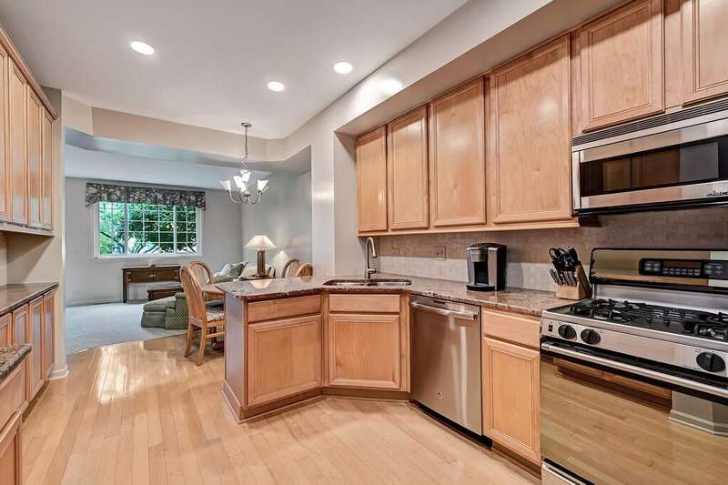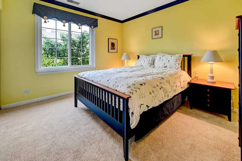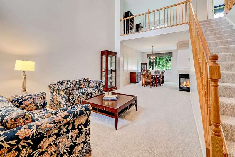Immaculate and thoughtfully appointed, this 2-bedroom, 2.1-bath townhome in highly desirable Westchester Woods offers the perfect blend of elegance, comfort and convenience. The inviting main level showcases a dramatic living room with a soaring vaulted ceiling and a stunning multi-sided fireplace that seamlessly connects the family room and dining area. The gourmet kitchen is a showstopper, featuring granite countertops, custom cabinetry, a breakfast bar and sleek finishes designed for both everyday living and entertaining. A stylish powder room with quartz countertops adds an extra touch of sophistication. Upstairs, the expansive primary suite is a true retreat with vaulted ceilings, a walk-in closet and a spa-like ensuite bath boasting quartz countertops, a soaking tub and a separate walk-in shower. The second floor also includes a spacious bedroom, a full bath, a convenient laundry room and a versatile loft that overlooks the living room below. Additional highlights include a smart thermostat, premium Hunter Douglas window treatments throughout, a 2-car attached garage and a private patio that opens to a serene wooded backdrop. Situated on a premium lot, this home combines privacy with an ideal location close to shopping, dining and easy access to major highways.