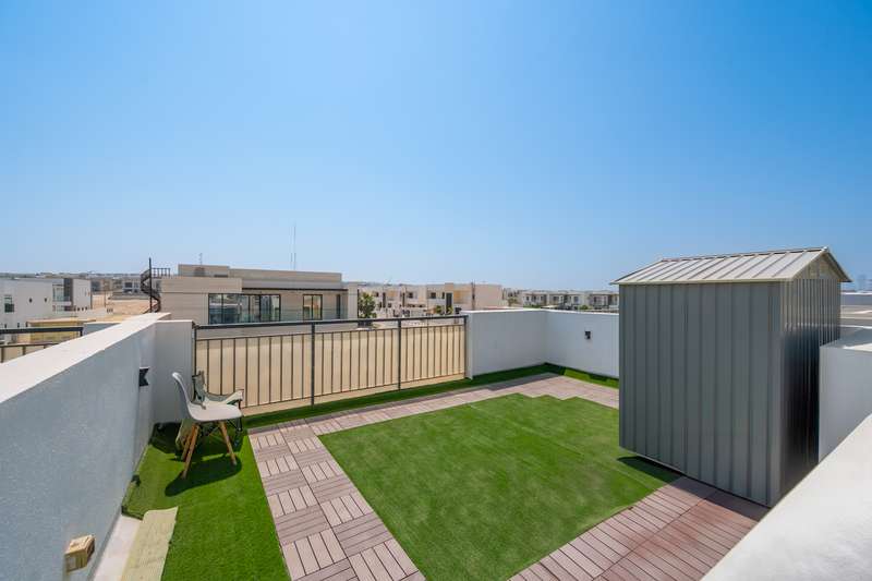Iona is pleased to offer this one-of-a-kind G+3 Four bedroom townhouse. This is a must see within the Al Furjan West Community. Step into a bright, skylit hallway that leads to spacious living areas and a striking staircase descending to the basement. Downstairs, you’ll find the fourth bedroom, a maid’s room, laundry area, and abundant storage—perfect for extended families or private space. As you enter back up to the ground floor, you will find a seamless open-plan layout for the living and dining areas, enhanced by natural light streaming in through an indoor-outdoor garden skylight. You will also find a separate, fully enclosed kitchen. The first floor is cleverly split across two levels, creating a sense of separation and privacy. The master suite sits on its own mezzanine floor with a large layout and full en-suite bathroom. Two additional upstairs bedrooms each include their own en-suite, ensuring comfort and privacy for all family members or guests. The rooftop level opens onto a generous terrace—ideal for entertaining, hosting BBQs during the cooler months, or simply enjoying the company of neighbours in a relaxed, open-air setting. - Multi Level Home - Open Plan Living - 4 bedroom + maids - Basement & Terrace - BUA 3,416 sqft - Plot 1,954 sqft - Vacant on Transfer - Must See!