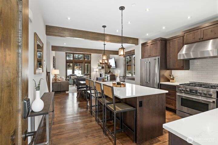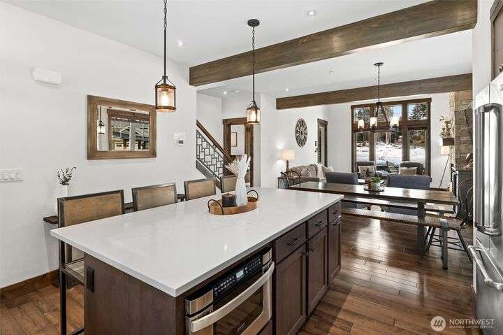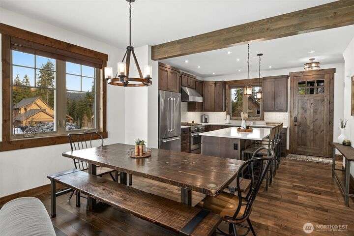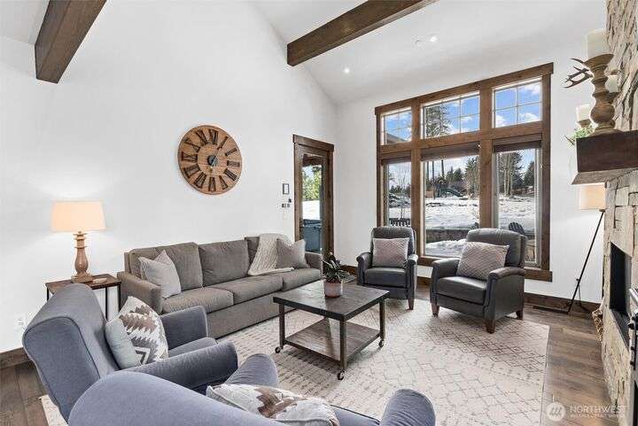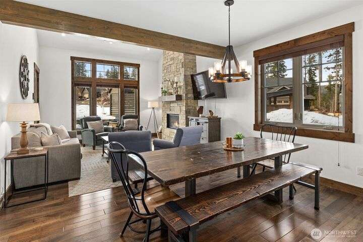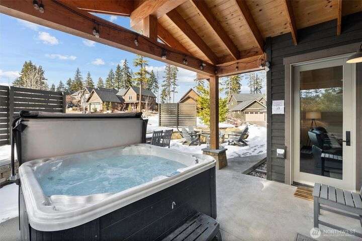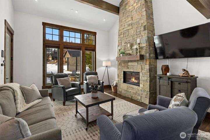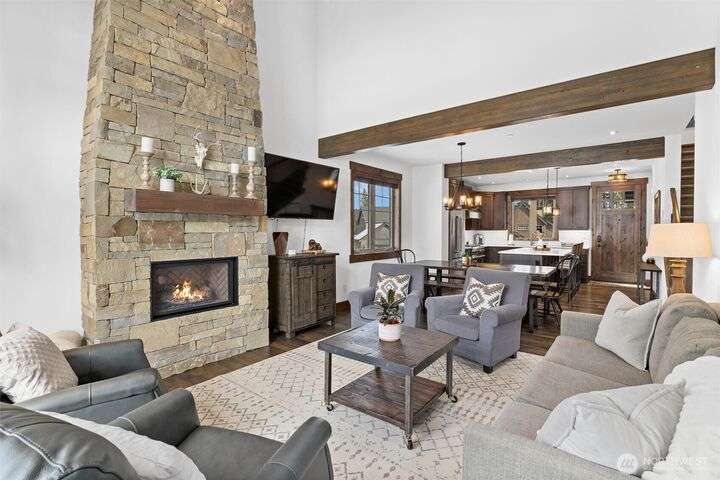 Relax at this Suncadia retreat in Miner’s Camp, just moments from dining, golf, the lodge, swim/fitness center and a private park! This charming home offers four bedrooms, including two primary suites—one on the main floor—plus three baths, cozy gas fireplace and air conditioning. Includes a game room in the garage, perfect for all ages! Beautiful finishes throughout complement the mountain lifestyle. The exterior is ideal for entertaining with a covered hot tub, gas fire pit + private cul-de-sac location. Part of the Suncadia rental pool, this is a fantastic short-term investment opportunity—ask about rental history! Just 90 minutes from Seattle, fully furnished + ready for you to enjoy all year long!