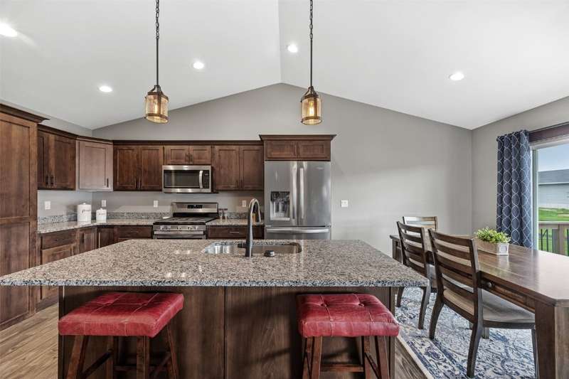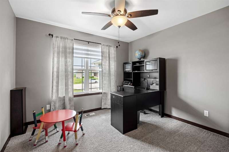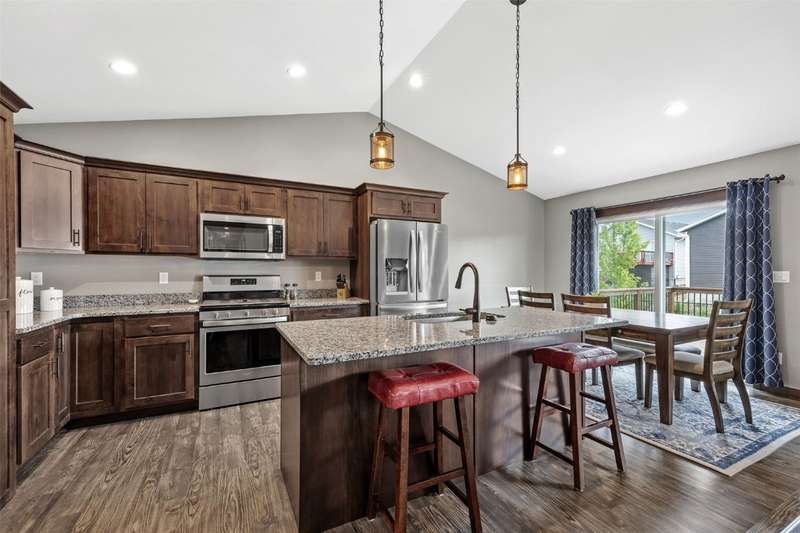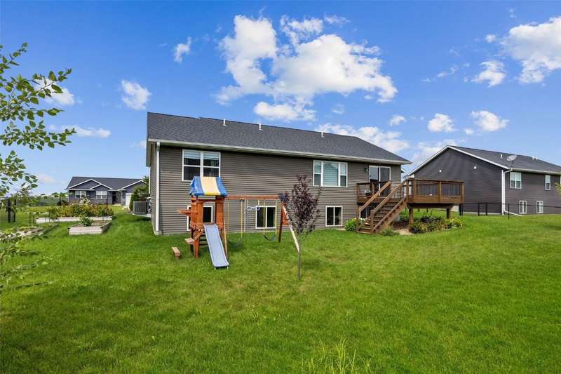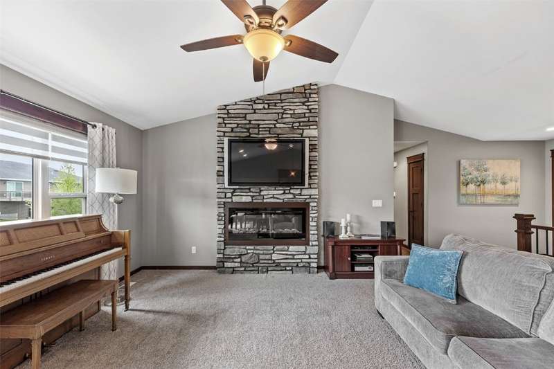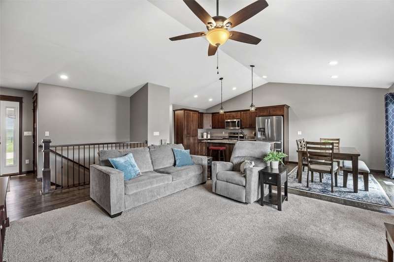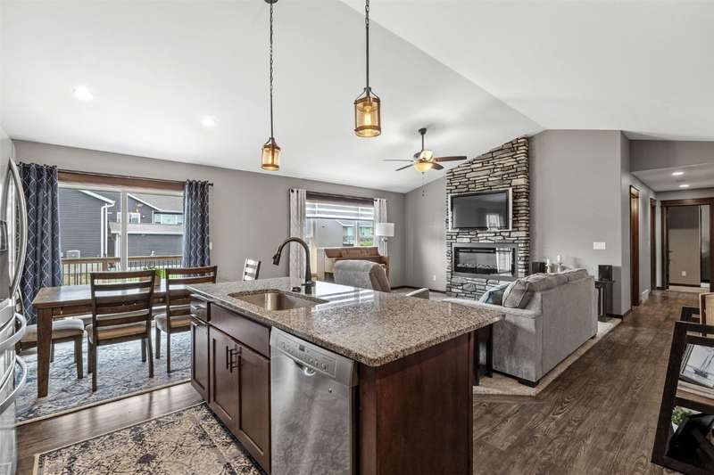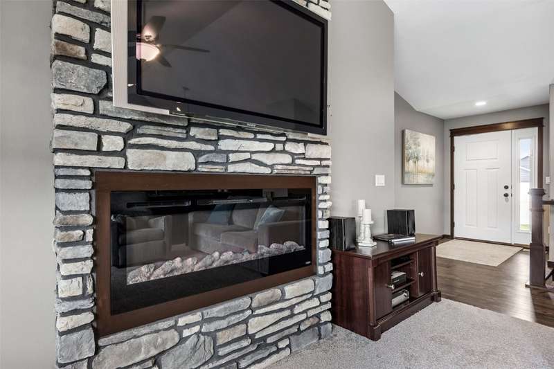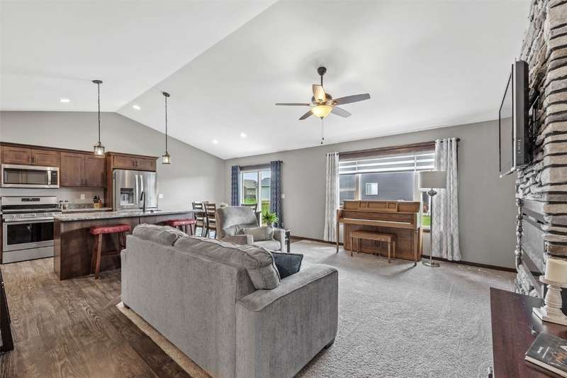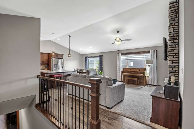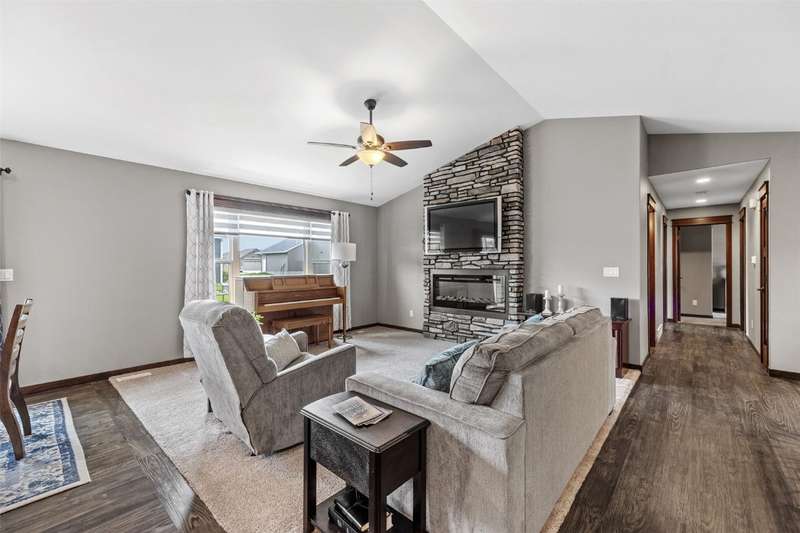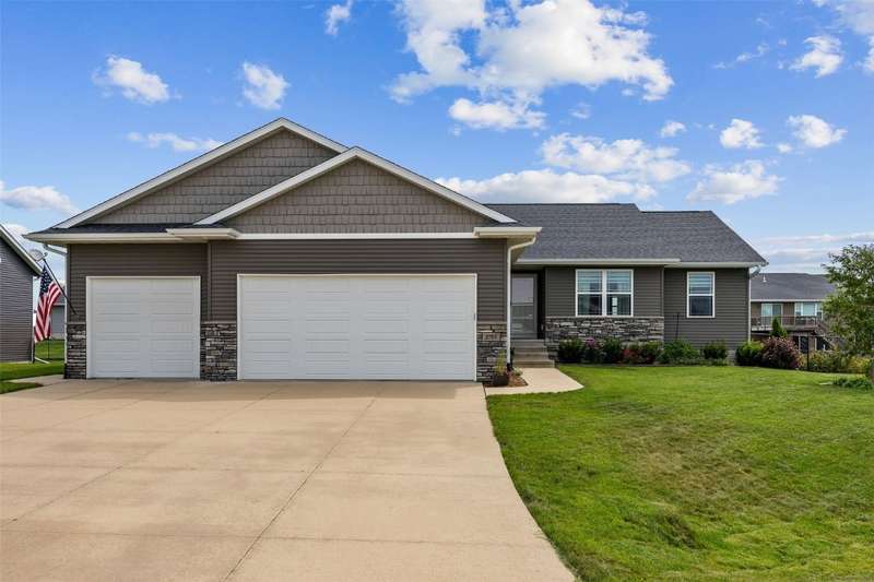 Palo is just minutes from Cedar Rapids & offers this beautiful ranch home with over 1500 Square Feet-main floor. Foyer entrance opens to a spacious Great Room featuring Cathedral Ceiling, Ceiling Fan & impressive Electric Fireplace accented with floor to ceiling Stone. Cathedral Ceiling extends to the Kitchen with abundant Cabinets, ample Quartz Counter space, Undermount Sink, Breakfast Bar & Appliances. "Check out the Walk In Pantry behind the Cabinet." Adjacent Nook Area is complete with Sliding Glass Doors leading to Deck. Tray Ceiling sets off the Primary Bedroom with Full Bath/Tiled Shower, Double Bowl Vanity & Walk In Closet. Two additional Bedrooms, Full Bath & Laundry Room completes the Main Level. Open Stairway from the Foyer extends to the Lower Level that is perfect for adding your finishing touches in this unfinished area. Attached Garage includes a Tandum from the 3rd Car. Exceptional for Workshop, Boat, etc.