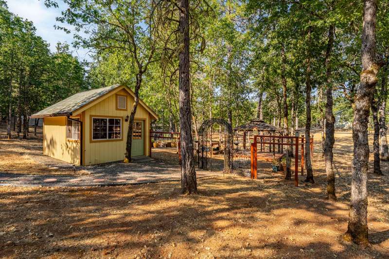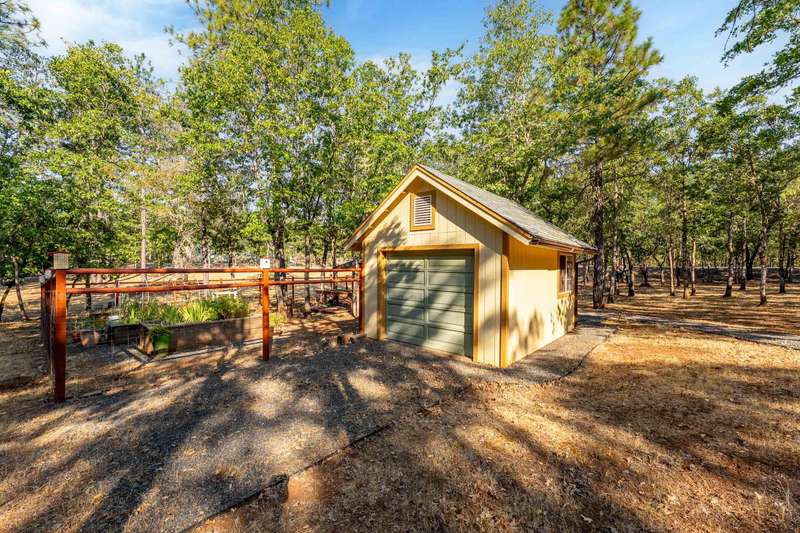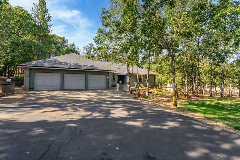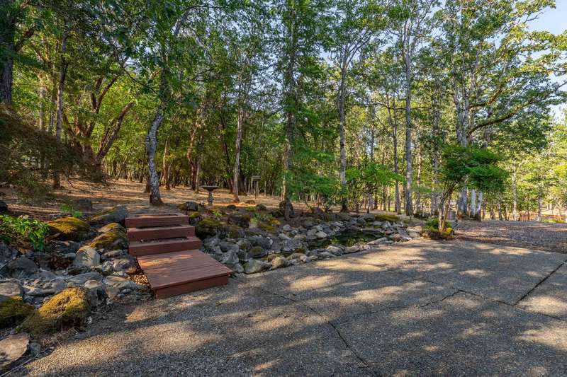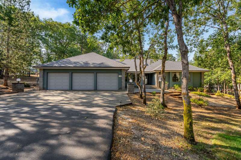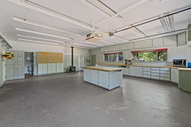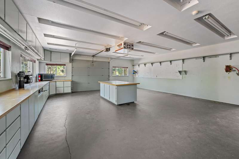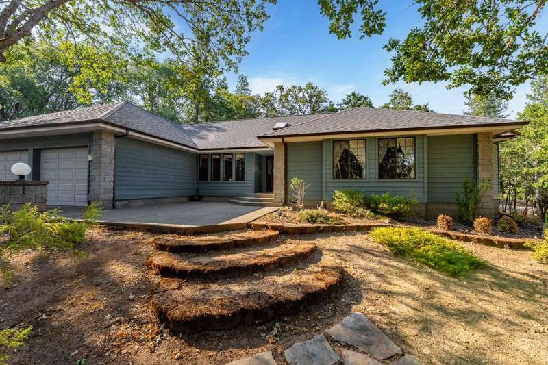 Welcome to your dream retreat! This 2,192 sq. ft. single-level home on 2.62 acres blends comfort, style, and functionality. Vaulted ceilings, skylights, and a cozy pellet stove create a warm, inviting atmosphere, while spacious living areas and a chef's kitchen with large island set the stage for gatherings. The luxurious primary suite offers a walk-in closet, private deck, and spa-inspired bath with jetted tub and tiled shower. A den with built-in desk, well-equipped laundry, and abundant storage add everyday convenience. Car enthusiasts and hobbyists will love the finished 3-car garage with cabinetry, wine cooler, and fridge, plus a 40'x45' workshop featuring 50-amp power, air filtration, woodstove, full bath, and RV-ready roll-up door. A heated/cooled bonus room is perfect for art, crafts, or a private office. Outdoors, relax by the pond and fountain, garden in the fenced beds, or unwind in the gazebo—this property offers the lifestyle you've been searching for.