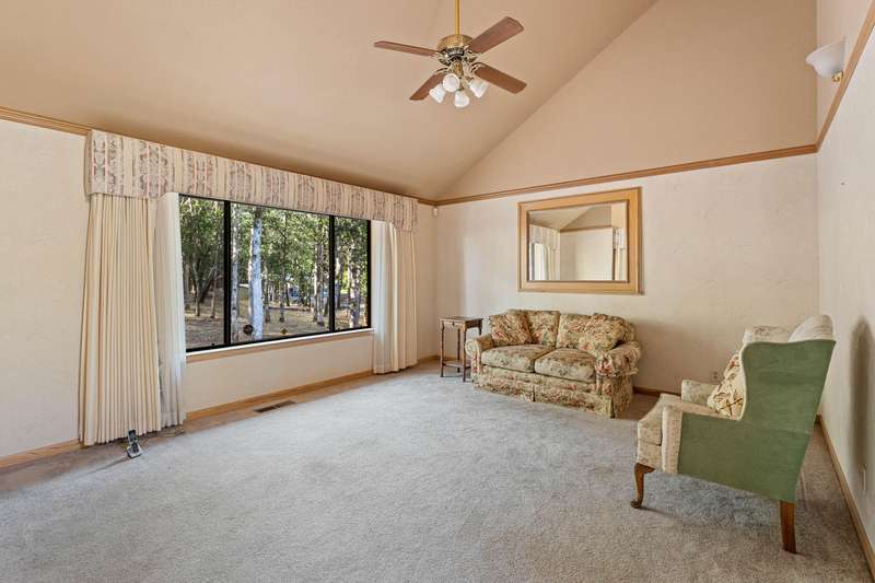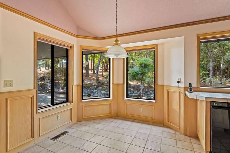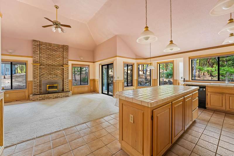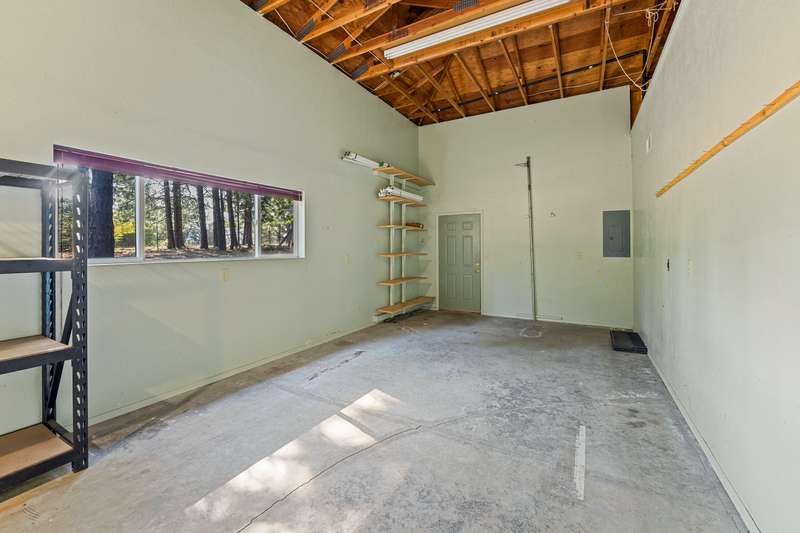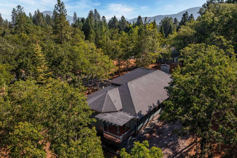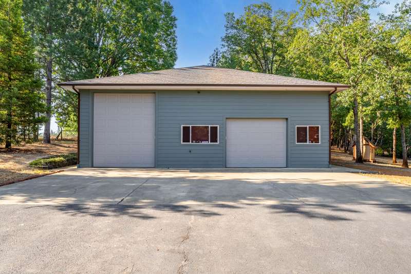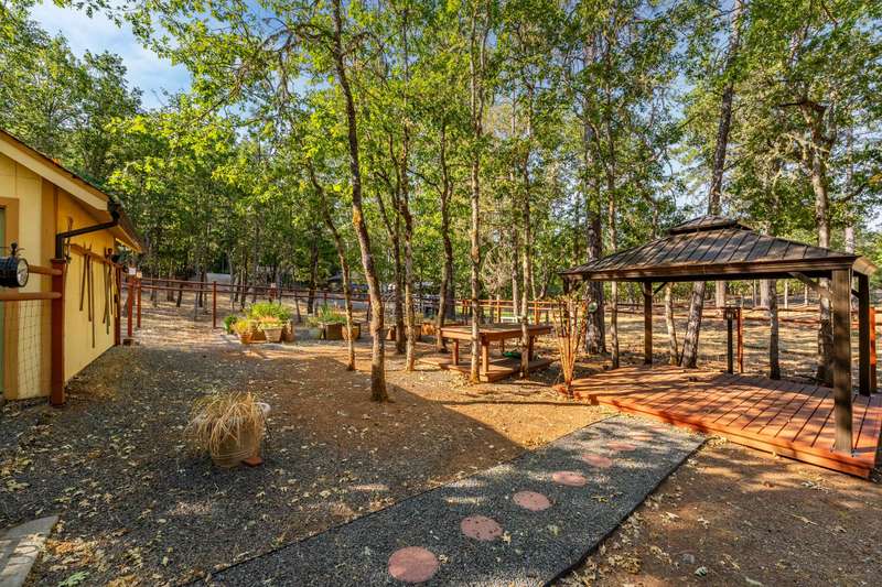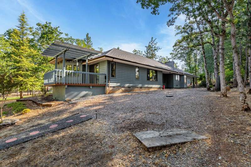 Welcome to your dream retreat! This 2,192 sq. ft. single-level home on 2.62 acres blends comfort, style, and functionality. Vaulted ceilings, skylights, and a cozy pellet stove create a warm, inviting atmosphere, while spacious living areas and a chef's kitchen with large island set the stage for gatherings. The luxurious primary suite offers a walk-in closet, private deck, and spa-inspired bath with jetted tub and tiled shower. A den with built-in desk, well-equipped laundry, and abundant storage add everyday convenience. Car enthusiasts and hobbyists will love the finished 3-car garage with cabinetry, wine cooler, and fridge, plus a 40'x45' workshop featuring 50-amp power, air filtration, woodstove, full bath, and RV-ready roll-up door. A heated/cooled bonus room is perfect for art, crafts, or a private office. Outdoors, relax by the pond and fountain, garden in the fenced beds, or unwind in the gazebo—this property offers the lifestyle you've been searching for.