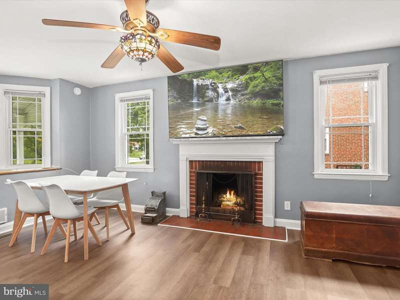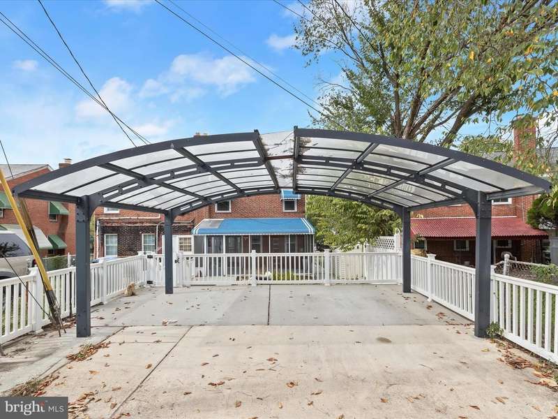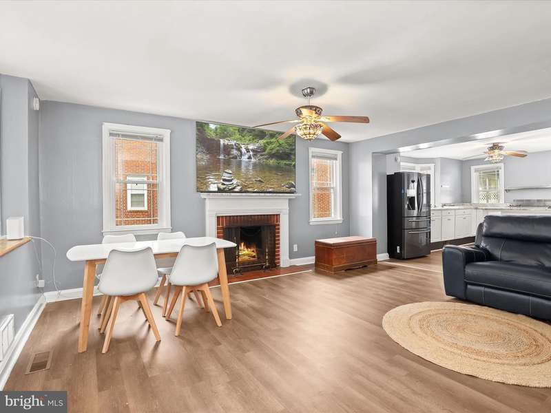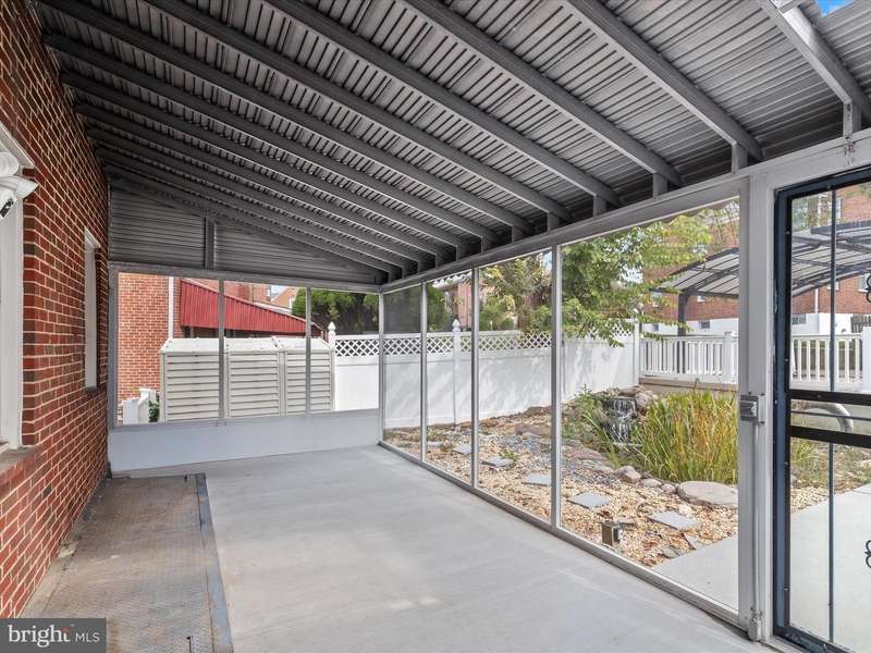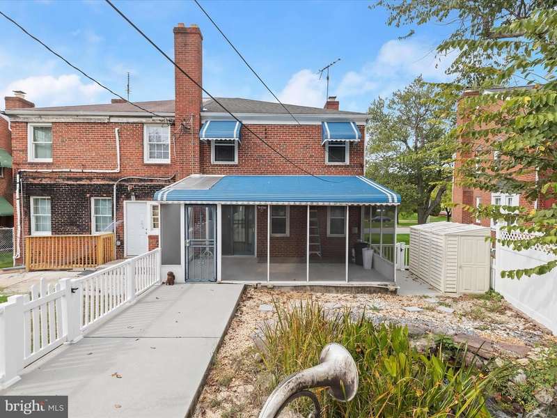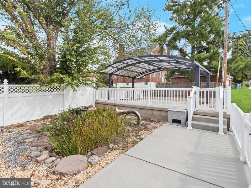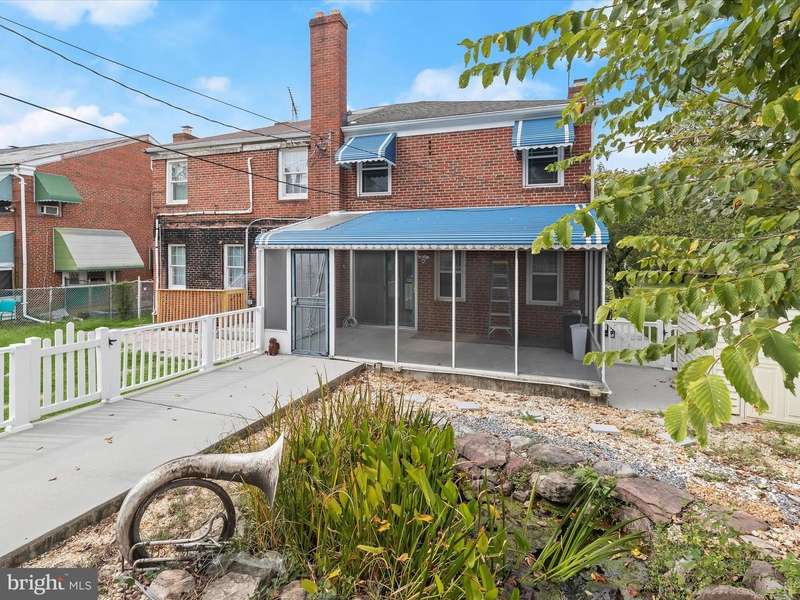 Brick exterior semi-detached home offering exceptional indoor and outdoor living. A two-car carport and a beautifully landscaped garden with a patio and water feature create a private retreat with seamless access to the screened-in patio. Enter from the front porch into the open living and dining room combination, showcasing luxury vinyl flooring, a bay window, and a cozy wood-burning fireplace. The spacious kitchen is a chef's dream, featuring a massive center island with bar seating, tall cabinetry, a double sink, an industrial stove, granite counters, stainless steel appliances, and ample storage. Upstairs, two generously sized bedrooms with hardwood floors are complemented by a convenient second-level laundry room and a luxurious bath with a double vanity, elegant tilework, and a walk-in shower. The finished lower level expands your living options with a recreation room, bedroom/office, full bath, and direct exterior access. A main-level powder room adds everyday ease. All of this is in a prime location just moments from I-95, I-695, and I-83, ensuring effortless commutes and connectivity.