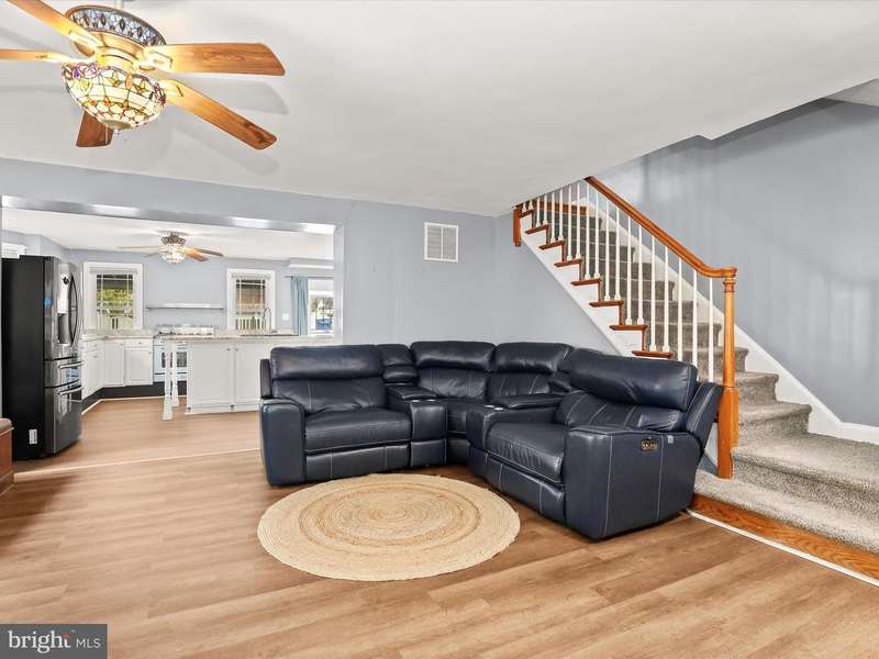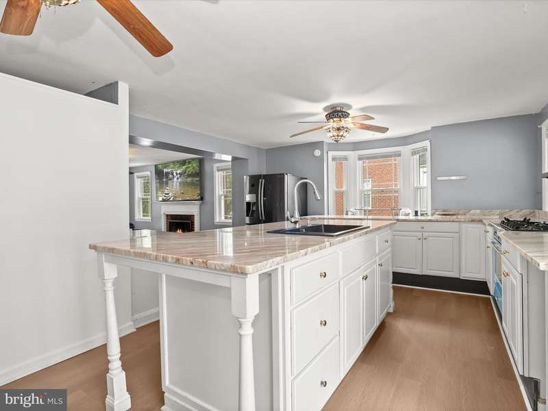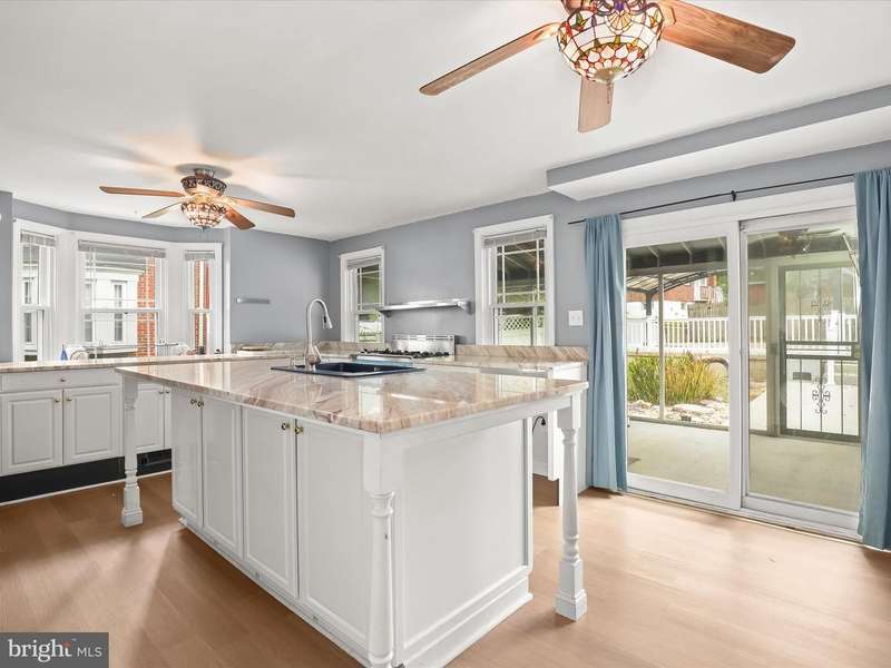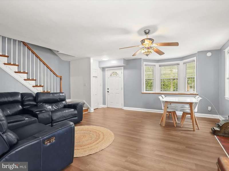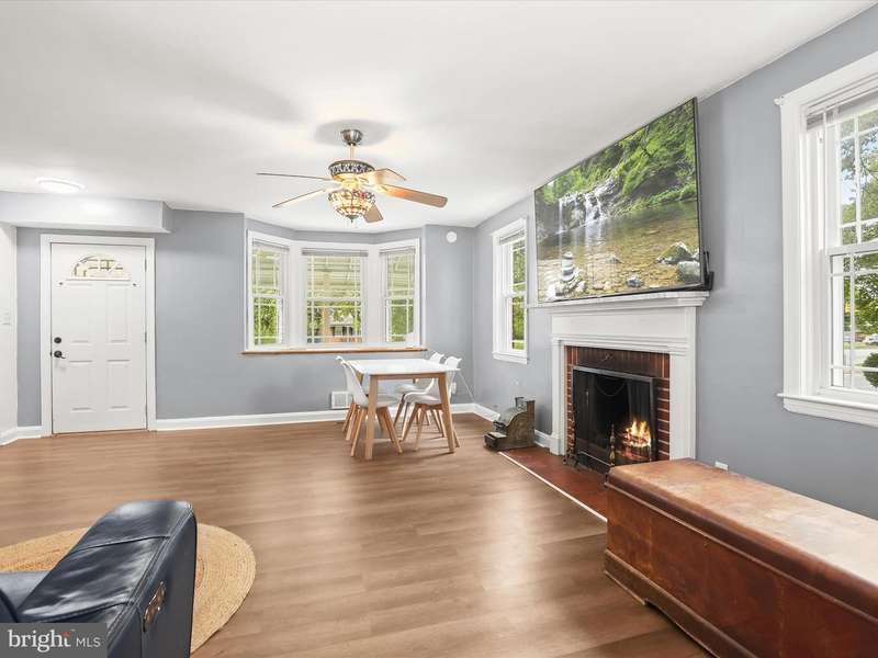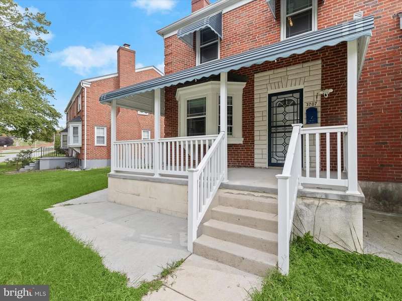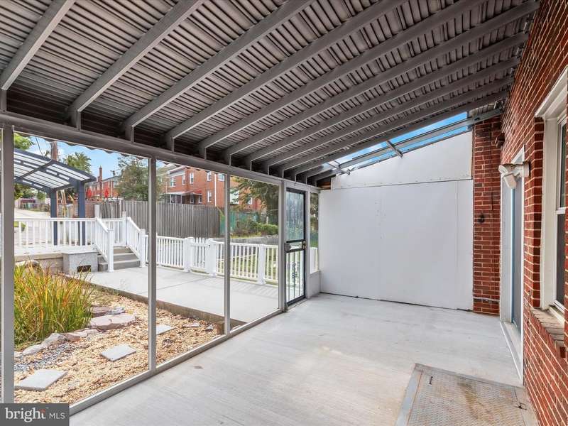 Brick exterior semi-detached home offering exceptional indoor and outdoor living. A two-car carport and a beautifully landscaped garden with a patio and water feature create a private retreat with seamless access to the screened-in patio. Enter from the front porch into the open living and dining room combination, showcasing luxury vinyl flooring, a bay window, and a cozy wood-burning fireplace. The spacious kitchen is a chef's dream, featuring a massive center island with bar seating, tall cabinetry, a double sink, an industrial stove, granite counters, stainless steel appliances, and ample storage. Upstairs, two generously sized bedrooms with hardwood floors are complemented by a convenient second-level laundry room and a luxurious bath with a double vanity, elegant tilework, and a walk-in shower. The finished lower level expands your living options with a recreation room, bedroom/office, full bath, and direct exterior access. A main-level powder room adds everyday ease. All of this is in a prime location just moments from I-95, I-695, and I-83, ensuring effortless commutes and connectivity.