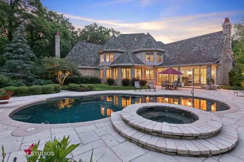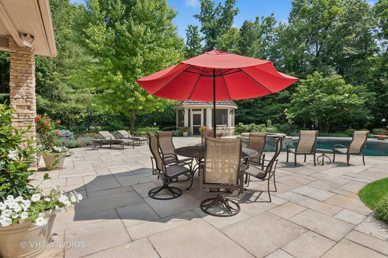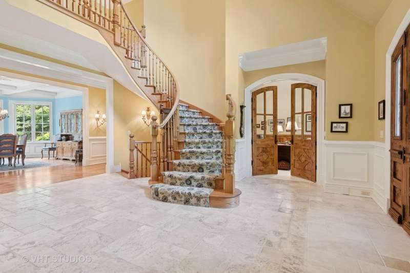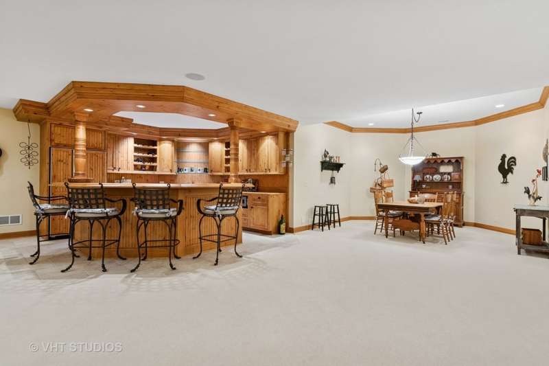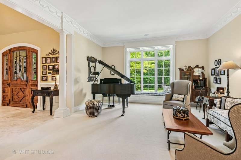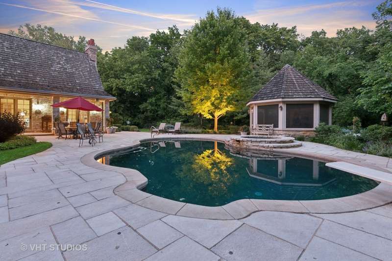 St. Charles schools! Luxury estate on 5 acres with extreme privacy on Hub Rd, (which is a dead end street), an architectural masterpiece of the finest quality of craftsmanship, custom built by Midwest Custom Homes. The grounds are covered with the perfect mix of lush grass, beautiful flowers, majestic trees with outdoor lighting throughout, sprinkler system. As you enter the property, on the long, brick paver driveway with a circular turn around, to the residence, the attention to detail is immediately apparent, and it's obvious that no expense has been spared. The residence boasts 11,667 square feet of meticulously designed space. It is comfortable, yet grand with 5 bedrooms, 6 full and two half baths, 4 fireplaces, finished basement, 4 car garage, inground pool. The extensive custom designed millwork throughout the home is truly awe-inspiring and every room has its own story. You'll enjoy amenities like hand-hewn newel posts on the dual staircases, alder custom designed doors, hand painted artistry in the hallway, whole house speaker system, high ceilings, beamed ceilings, windows in every room for spectacular views, recessed lighting, wainscotting, crown molding, plus more. Walking to the front on the stone pathway you are greeted with a limestone porch and the most beautiful door made of alder, accented with a pane of iron accents crafted locally in Wasco. Stepping into the foyer is breath taking with the views of the curved staircase, 2nd floor cat walk staircase, limestone floor, voluminous ceilings. The office is private, with stone fireplace, built in bookcases. Formal living/music room accented by 4 columns. The hub of the house is the kitchen, formal dining room, sun room, family room. The layout and flow in this floor plan is perfect for gatherings. Storing and accessing items/serving pieces is easy with the spacious, custom butler's pantry as well as, a walk-in pantry. Kitchen is both stunning, and well equipped with Viking 6 burner, gas stove, sub-zero refrigerator/freezer, extensive cabinetry, center island, eat in area, abundance of seating. The family room beamed ceilings take your breath away, wet bar area, fireplace. The first floor primary suite boasts 2 enormous closets, fireplace, built in bookcases, sitting area, bathroom with heated floors, dual sinks, soaker tub, walk in shower. The four expansive upstairs bedrooms feature their own en-suite bathrooms with walk-in closets, window seats, themed, custom decorating. One of the bedrooms could be an in-law or second primary bedroom, since it has an enormous sitting area with entertainment center. Second floor, loft/library area is great for a quiet area to relax, read a book, sip your coffee or utilize the desk area for personal/business work with the killer view into the backyard. The finished English/walk-out basement has a, bar/kitchenette with fridge/freezer, ice maker, microwave, dishwasher and lots of cabinetry, eat in area, game area, 2 family room areas, exercise room,