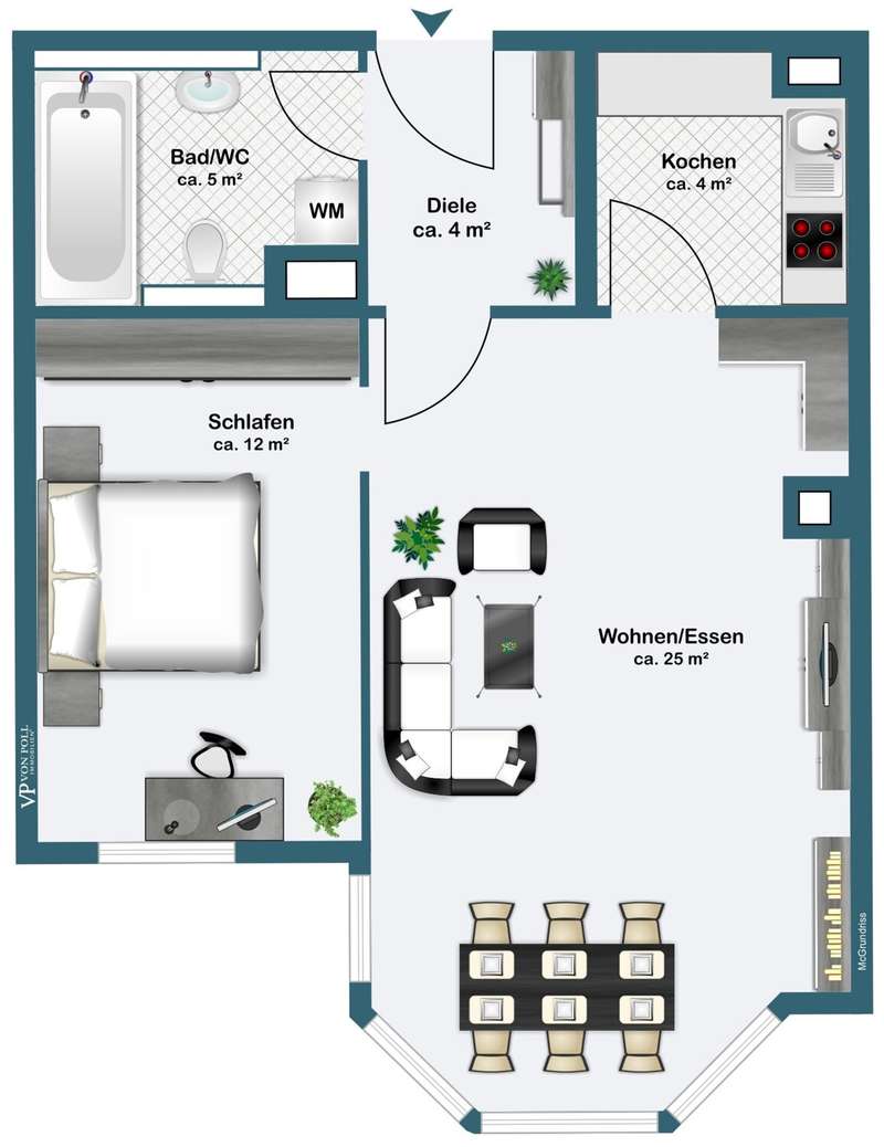 Very nice sunny and well-kept 2 room apartment with panoramic bay window to the south side, wonderfully light-flooded living rooms, stylish vintage bathroom and separate kitchen with fitted kitchen, comfortable on the 1st floor with elevator, in Ingolstadt-West, OT Friedrichshofen.