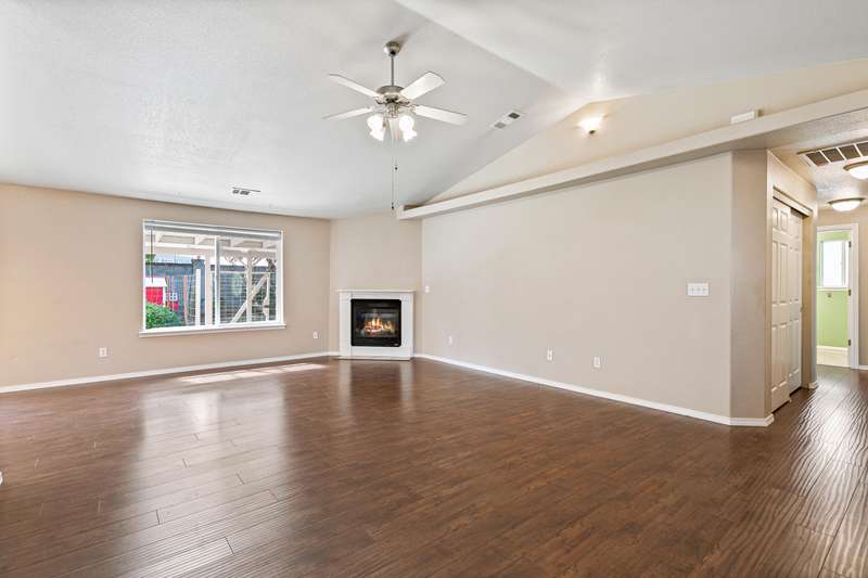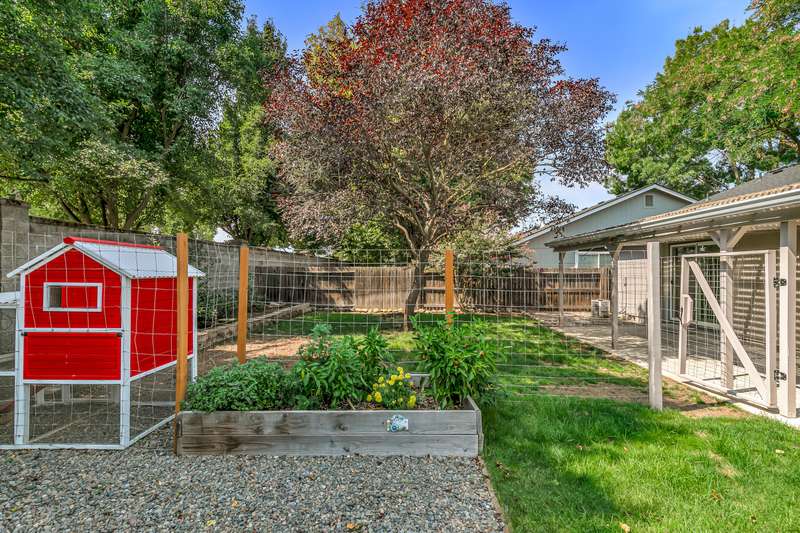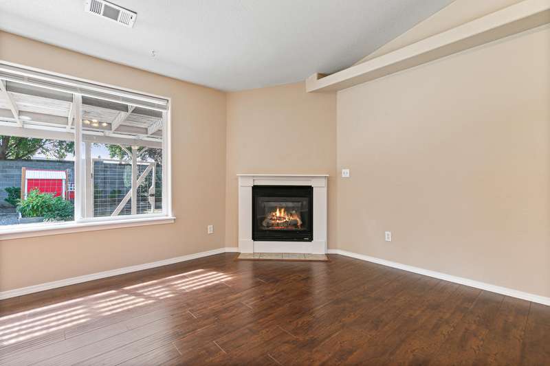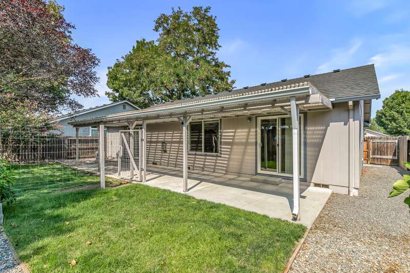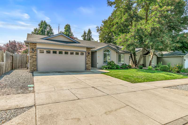 Well maintained & move-in ready, this 3BD/2BA home located in the desirable Hampton Place Estates is ready for your personal touches. Brand new roof installed this year with transferable roof warranty. Enter into a vaulted great room open to the dining & kitchen area complete with gas fireplace, solar tube & upgraded laminate flooring throughout. Kitchen features breakfast bar, matching white appliances & includes the refrigerator. Vaulted & spacious primary with slider door access to the covered back patio & bathroom with single vanity, neo angle shower & walk-in closet. Newer paint in guest rooms & second bathroom with large vanity & tub/shower combo. The backyard offers lush landscaping with raised garden beds, fruit trees & fenced area with chicken coop. Finished & oversized two car garage with epoxy floor & street parking available. Other upgrades include newer carpet in the bedrooms and exterior paint in the last 2 years. Great value with easy access to Rogue X & town amenities.
