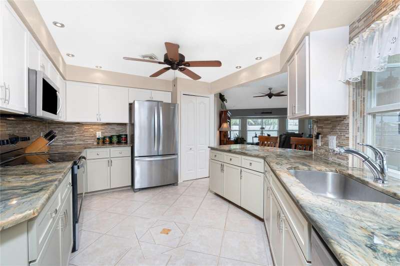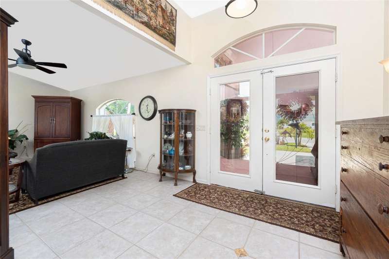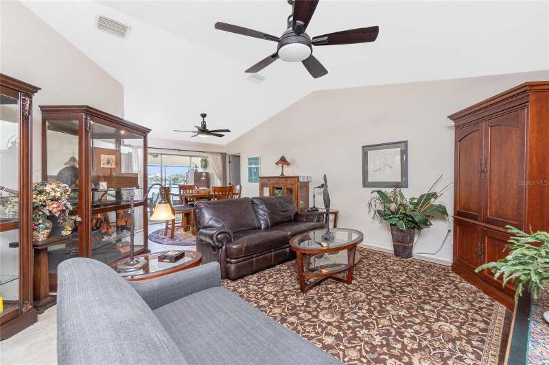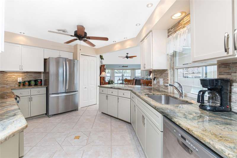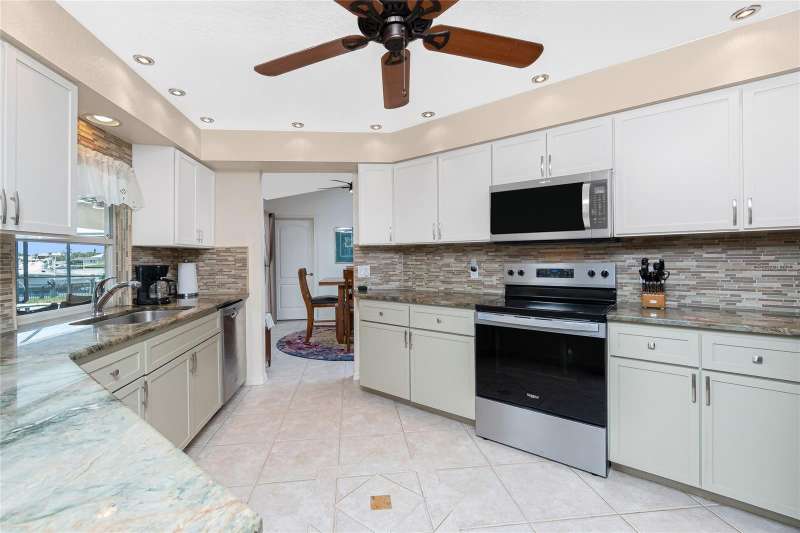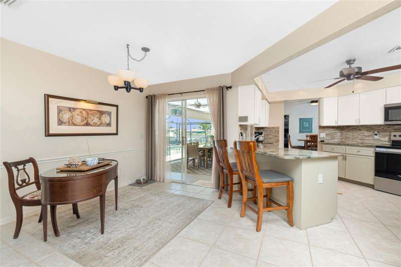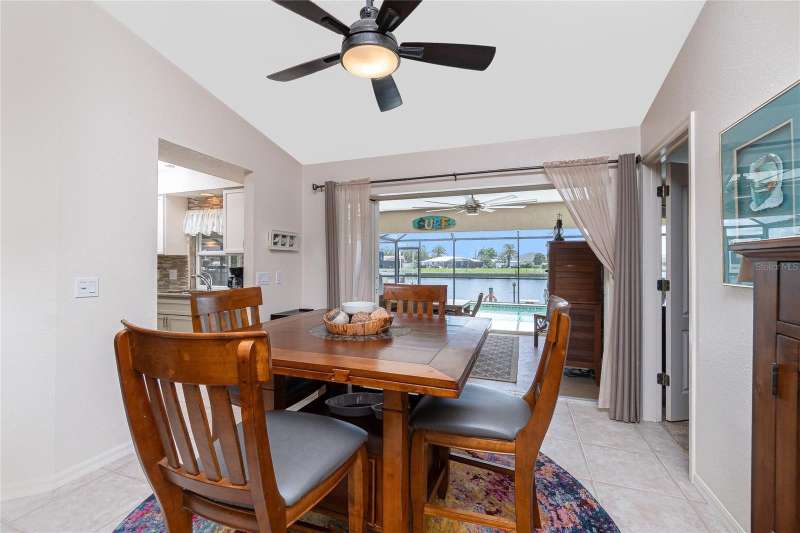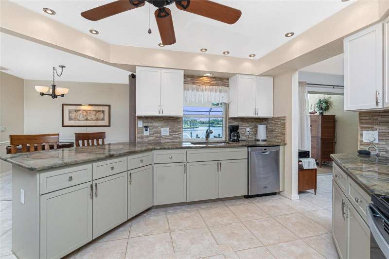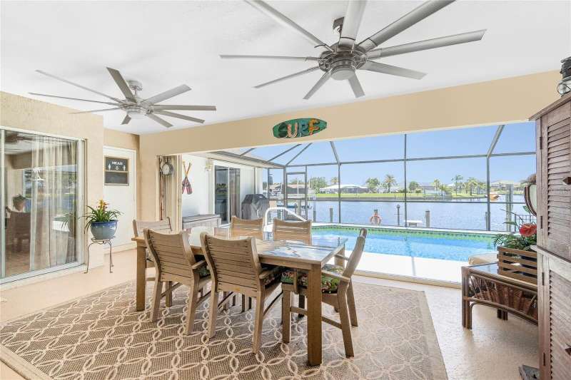 Welcome to 4142 Reif Ct, a boater's paradise nestled in charming Port Charlotte, Florida. This waterfront gem provides an unobstructed, dazzling view of four intersecting canals. The property's exterior features a well-maintained 105-foot seawall and a 51-foot dock equipped with both water and electric, a 10,000-pound boat lift, accommodating all your nautical needs with no bridges to navigate to open water. Imagine starting your mornings with breakfast served at the kitchen bar, surrounded by gorgeous granite countertops and sleek stainless-steel appliances. This spectacular 2,345 sq.ft single-family home boasts a split floor plan with 4 spacious bedrooms, 2.5 bathrooms, and a large primary suite. The luxurious primary bath is appointed with dual vanities, a roomy walk-in shower, and a soothing jetted tub, creating the perfect retreat. Enjoy the Florida sun in your private heated pool or retreat to the spacious, fenced-in backyard that stretches all the way to the seawall. The home, crowned with a new roof installed in 2021, also offers full hurricane protection with practical accordion shutters. The updated lighting fixtures and ceiling fans add a modern touch to this inviting home. A large, detached storage shed is included for all your storage needs. Rest easy knowing the flood insurance is transferable and you're just 25 minutes away from Gulf beaches. Experience an impeccable blend of luxury and convenience at 4142 Reif Ct, a finely kept home perfect for creating lasting family memories. Don't miss the chance to call this waterfront oasis your own. Schedule a showing today or reach out for more information. All dimensions and specifications are deemed to be accurate and should be verified to the buyer and/or buyer's broker satisfaction