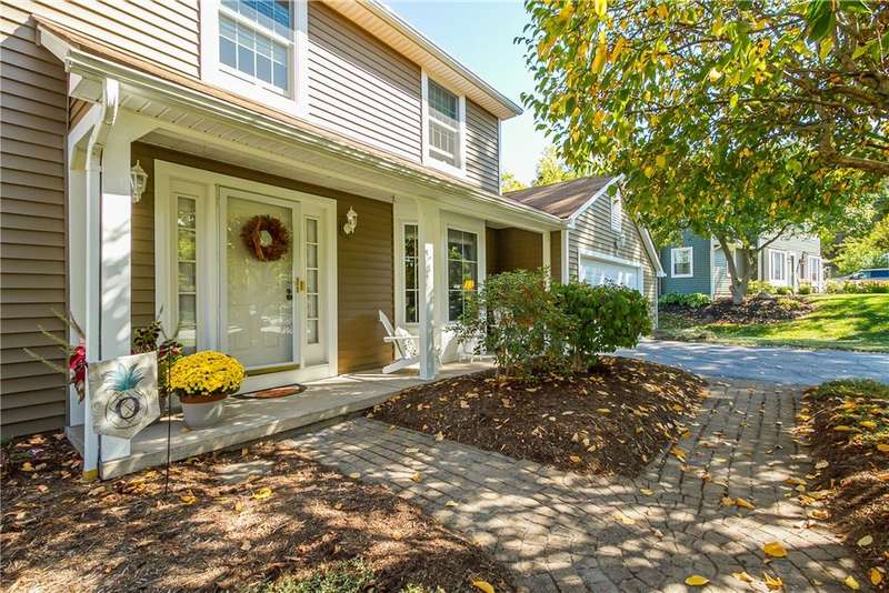 Your OPPORTUNITY to live in the heart of Fairport HAS ARRIVED with this 4Bd, 2.5Ba Colonial with a gorgeous Backyard OASIS! This well maintained home features an Eat-in kitchen with Quartz countertops, a large center island with breakfast bar, plenty of cabinet space, matching appliances, including a double oven and a large pantry. The Kitchen opens to a Cozy family room with a woodburning fireplace and windows with a bench seat that overlooks the back yard. Formal living room with lots of natural light and hardwood floors and a formal dining room perfect for entertaining!! Also on the first floor, enjoy the ease of a First Floor Laundry Room and a convenient half bath! Upstairs, you will find a SPACIOUS Primary Suite with wall to wall carpeting, a ceiling fan and a Full bath, complete with double vanity separate toilet/shower area and a walk-in closet. 3 additional bedrooms with ample closet space and featuring hardwood floors & carpeting, as well as a Second floor main full bath. Partially finished Full basement that offers extra flex/rec space plus plenty of storage. The crown jewel is the OVER HALF ACRE LOT featuring an expansive composite deck, paver patio, plenty of lawn space for activities & a beautiful inground pool!!! Low Fairport Electric!! FAIRPORT Schools! Close to town hiking paths, Eastview Mall, Wegmans and local shops & restaurants! Offers are due Tues Oct 7th at 12pm. Public Open House Saturday October 4th from Noon-2PM.