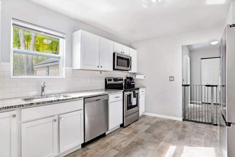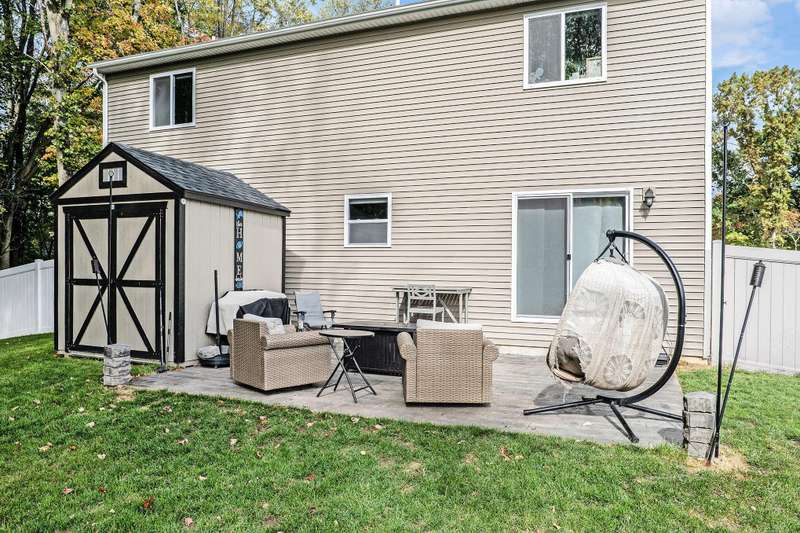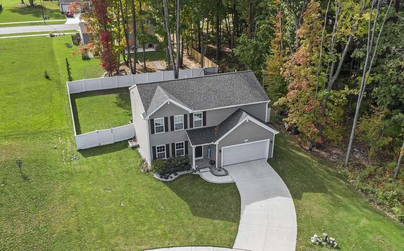 GREAT LOCATION!...FENCED-IN BACK YARD!...FINISHED BASEMENT!...Don't miss out on this great opportunity! Since purchasing their new home 2 years ago, Sellers have added vinyl fencing for privacy, a stamped concrete patio, an 8x8 storage shed, underground sprinkling w/remote wifi controller, & finished the basement adding a family/rec room & 5th bedroom. Main floor has an impressive open floorplan w/living room, dining area w/slider to patio, upgraded kitchen w/granite countertop & stainless steel appliances, main floor laundry, half bath & mud room. Upper level has a master suite w/full bath & walk-in closet, 3 additional bedrooms & 2nd full bath. Great location! Located on a quiet cul-de-sac next to a beautiful wooded lot...fenced-in back yard for more privacy...within walking distance to nearby schools.