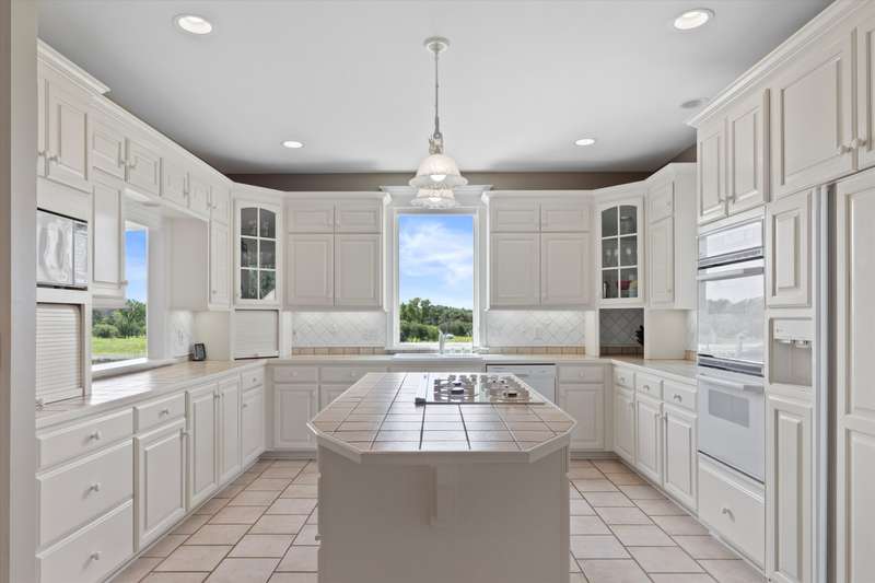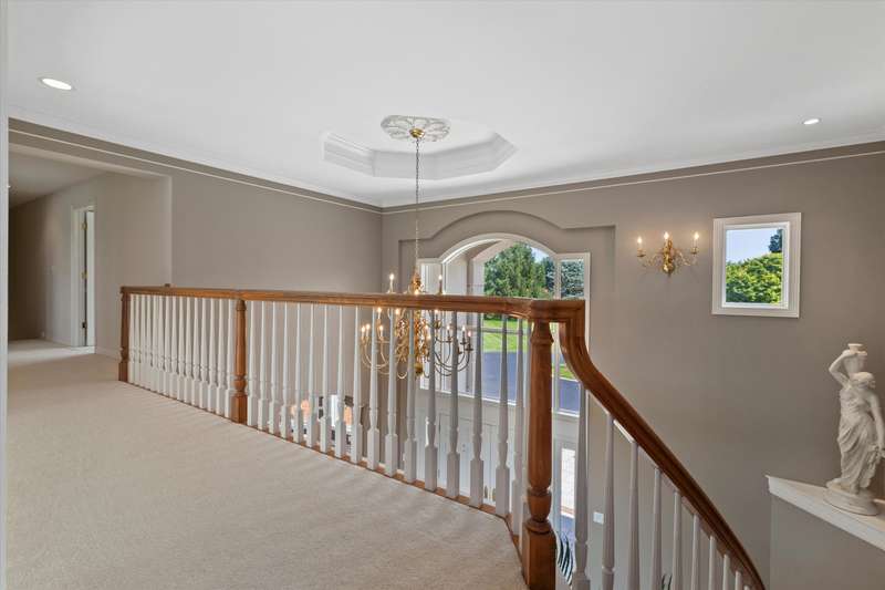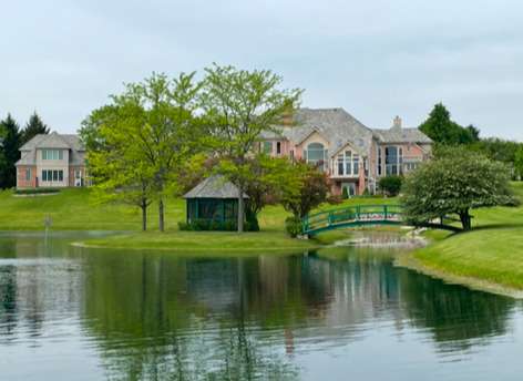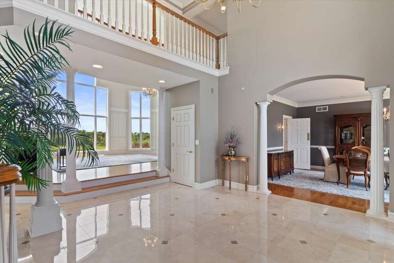 Nestled amidst 35 acres of pristine landscape, this French Manor estate epitomizes luxury and tranquility in every detail. A private oasis awaits, complete with a serene pond graced by a charming bridge leading to a secluded island adorned with a picturesque gazebo. This meticulously crafted residence harmonizes architectural elegance with natural beauty, offering a sanctuary unlike any other. Approaching the grand entrance, guests are welcomed into a foyer that sets the tone for the estate's opulence. The French Manor architecture is immediately apparent, with its classic lines, steeply pitched roofs, and intricate stonework exuding timeless sophistication. Inside, the interior unfolds with spacious living areas that blend seamlessly with the surrounding landscape. The main living spaces boast soaring ceilings and expansive windows, allowing natural light to flood the rooms while offering breathtaking views of the estate's grounds.