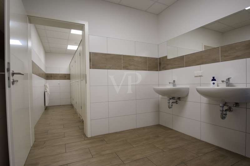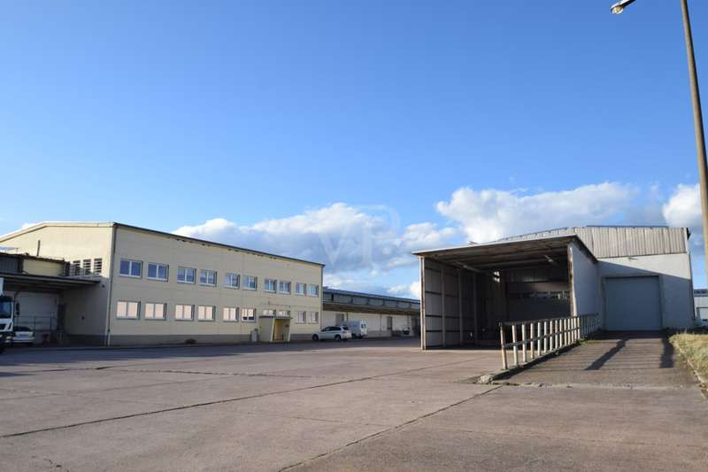 One of seven modern warehouse/production halls is available to let in an economical, highly frequented location. The spacious hall areas, which were used as production and storage areas in the past, can be accessed via the side entrance areas. The hall has industrial radiant ceiling heaters and high-voltage connections. A container building in the hall and further office space in the neighboring building are available for office use. Access is via sectional doors at ground level as well as a loading ramp. This provides very good conditions for loading and unloading trucks. The heavy-duty industrial floor is specially designed for industrial trucks or for higher loads, e.g. from machines or high-bay storage systems. Ten parking spaces are available at the property. The open areas on the property offer sufficient space for maneuvering trucks. The entire site is fenced and accessible via a lockable entrance gate. The rental price is exclusive of ancillary costs and VAT.