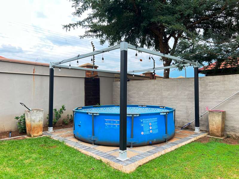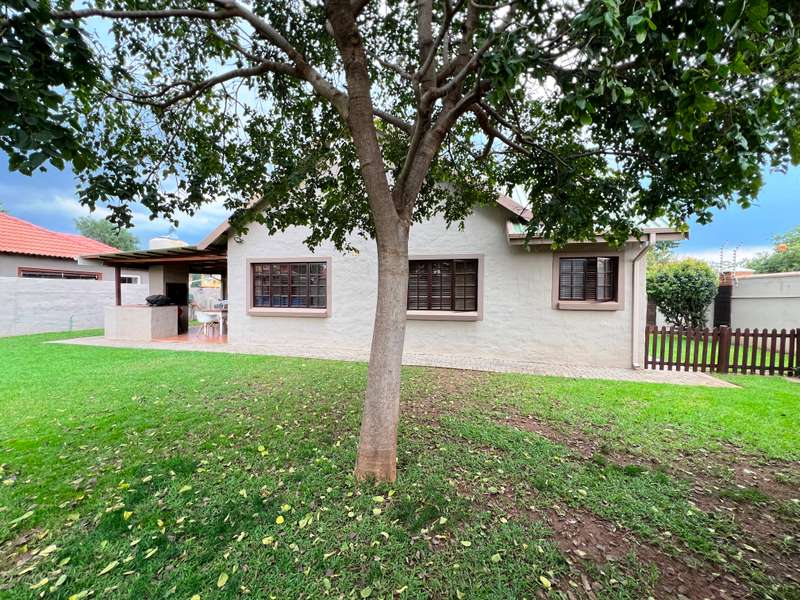 Exclusive sole mandate Such an ideal home for a young family! Why? - Lots of yard space all around the home! - There is so much space to add a swimming pool! - Ample, safe parking space for visitors inside your own yard! - Space along the side of the house for a carport for a caravan/trailer/more guest parking - Air-conditioning in the lounge/TV room - A generator - Gas hob and solar geyser to save electricity! The geyser is also connected to a Geyserwise console that manages energy consumption The Meadows Estate offers family fun and a lifestyle element within a secure environment! - You can go and fish at the dam! - Go for relaxing walks through the estate - Take the young ones to go and play at the play park The home has been designed for comfortable living with the kitchen, dining and lounge area all forming part of one large open space. From the lounge one has direct access to the veranda with a built-in braai and of course the very spacious back garden! The bedrooms are airy and spacious. Two bedrooms share a bathroom with a bath only. Special light fittings will keep you nice and warm in winter! The master suite is complimented by a spacious full bathroom! This bathroom boasts with special lights that help you keep warm in winter! Contact us for a viewing appointment!