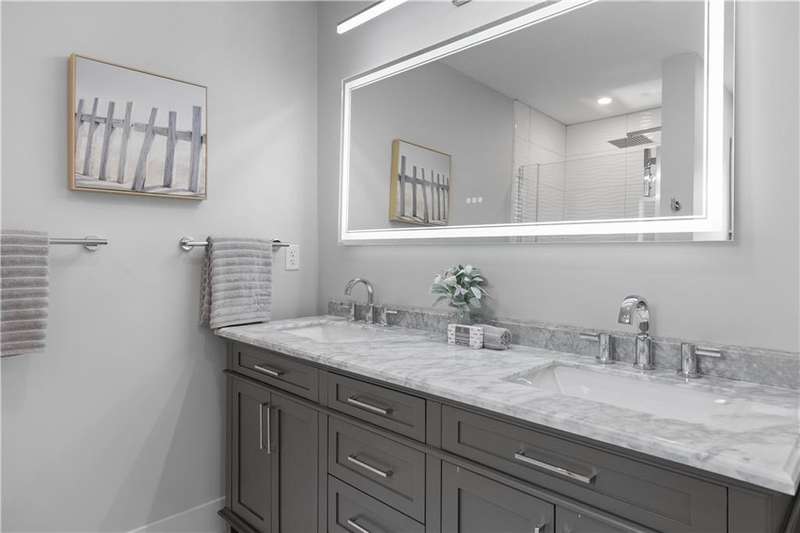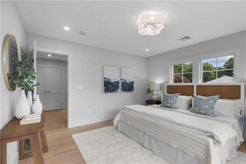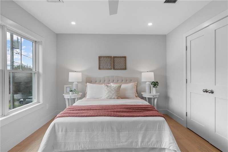 This completely reimagined coastal home has been taken down to the studs and rebuilt with luxury and comfort in mind. A brand-new second floor expands the living space, creating a modern retreat just minutes from the shoreline. Inside, enjoy gleaming hardwood floors throughout, a state-of-the-art heating and cooling system, and top-tier Thermador appliances with quartz countertops. Step outside to a quaint front porch, perfect for morning coffee, or retreat to your private backyard deck for quiet evenings. The newly paved driveway, fenced yard, and attached one-car garage add convenience and security. Every detail is brand new—just bring your flip flops and start enjoying the beach lifestyle.