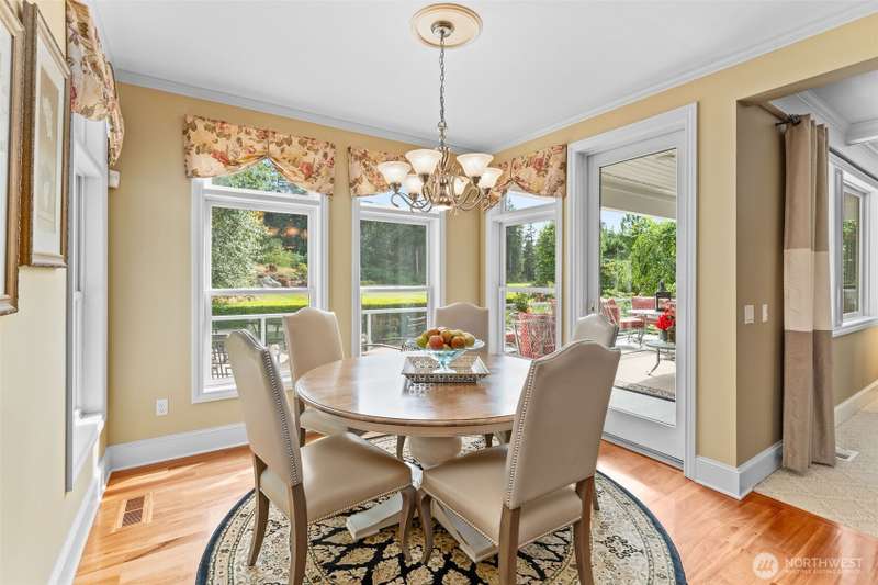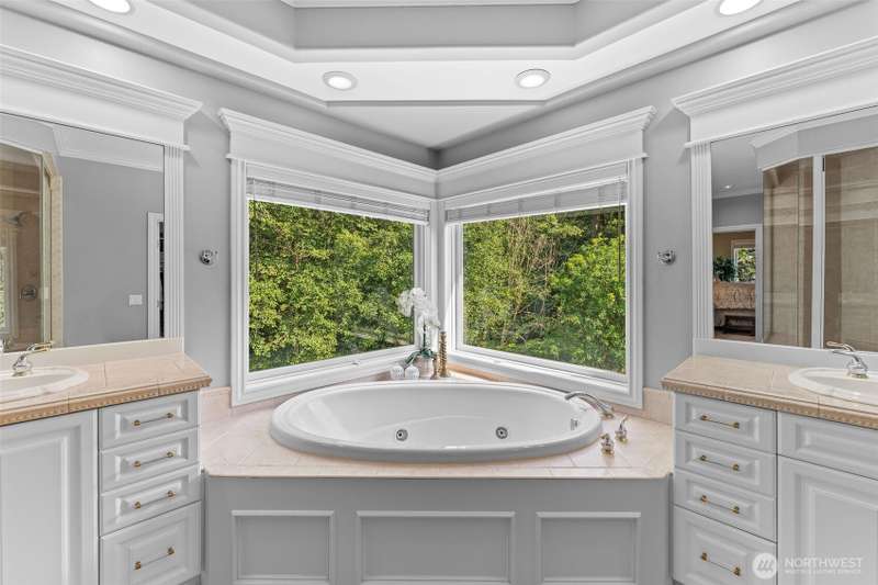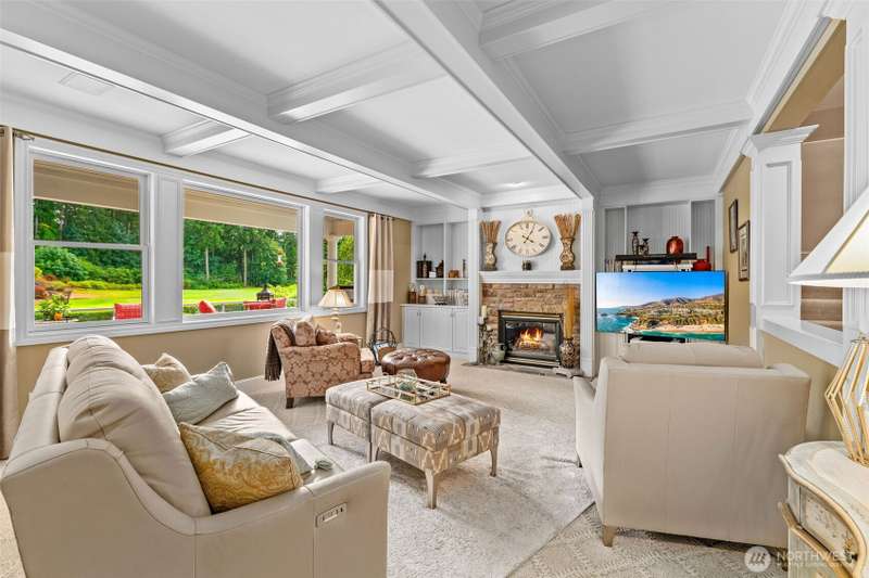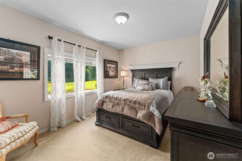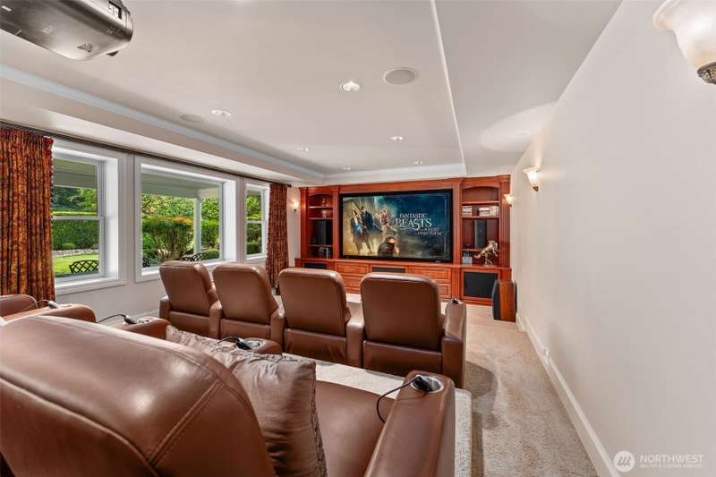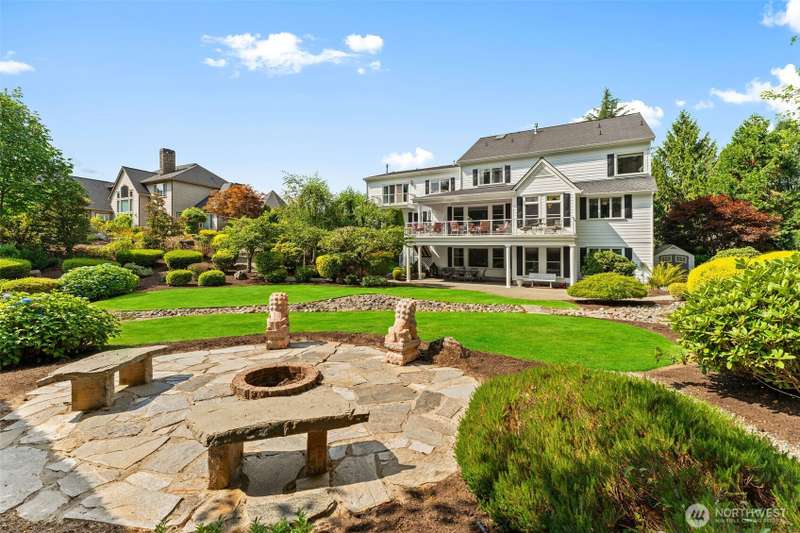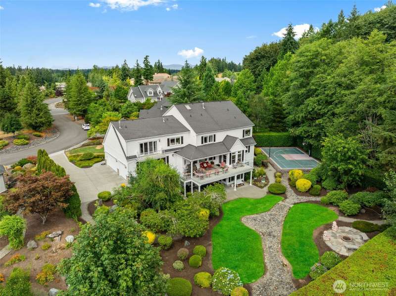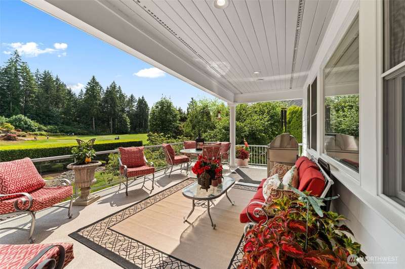 Welcome to your dream home on the 15th green of Washington National Golf Course! Nestled in a gated cul-de-sac, this stunning 5 bedroom (4 bed septic), 3.5 bath house boasts luxurious living space. On the main floor you will find the living & dining rooms & office. The beautiful kitchen, w/ Miele appliances, center island & pantry. The adjacent dining area & family room offer coffered ceiling w/ stone fireplace & stunning views of the golf course. Upstairs includes incredible primary suite w/ sitting area, cozy fireplace, walk in shower, jetted tub & walk in closet. Three additional bedrooms & bonus room. Lower level features home theater & mother in law suite. Outside you will find a sports court, covered patio, 2 decks & firepit. New HVAC