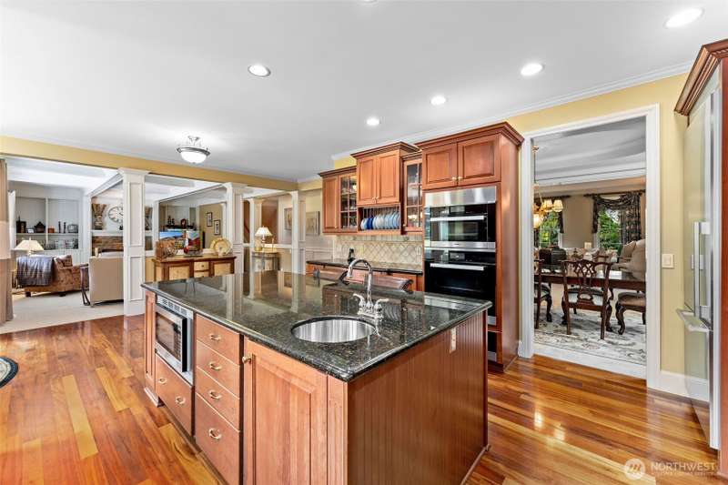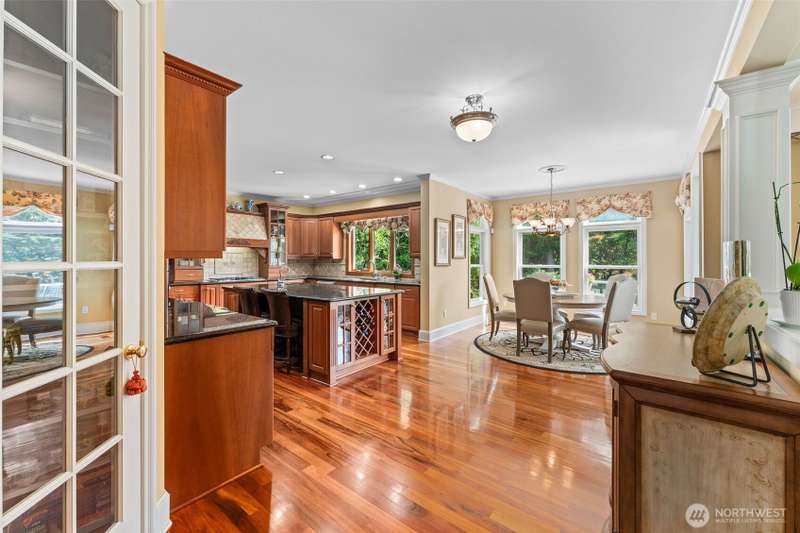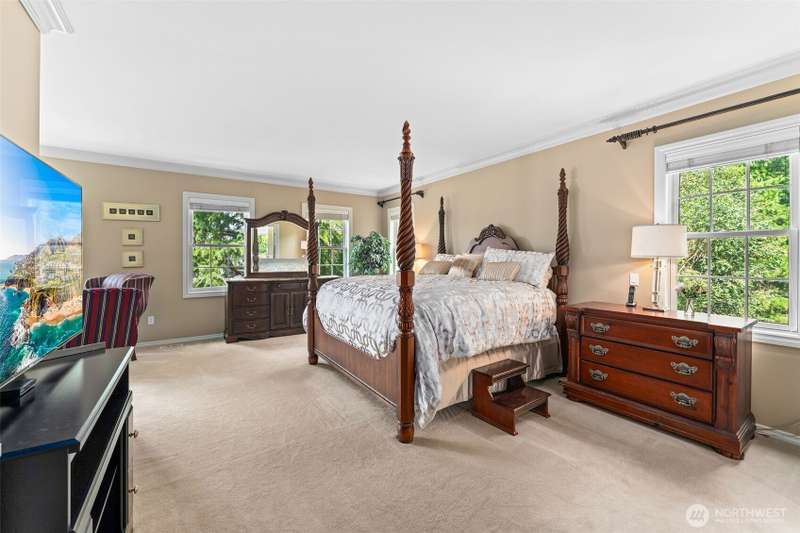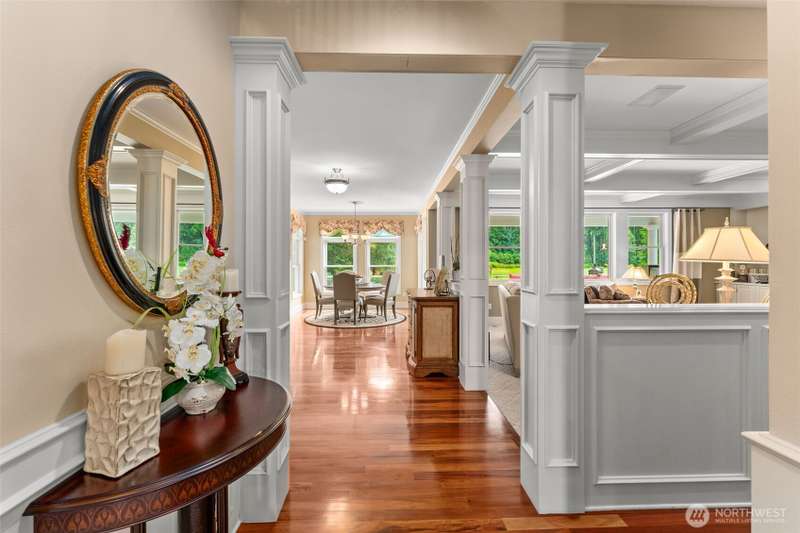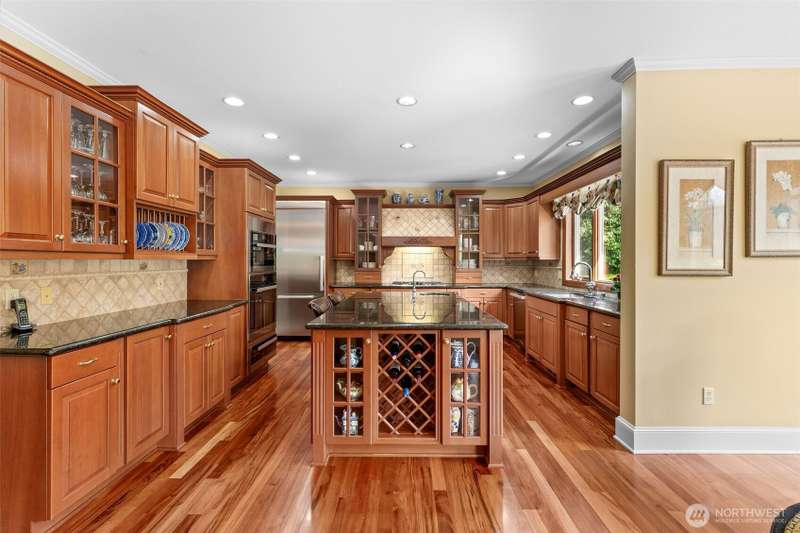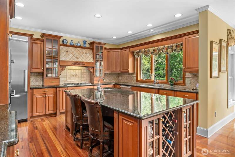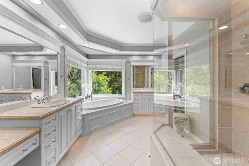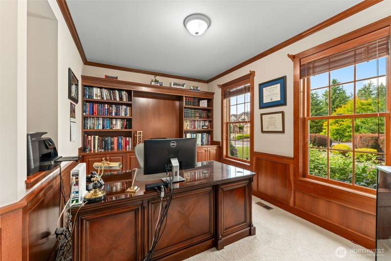 Welcome to your dream home on the 15th green of Washington National Golf Course! Nestled in a gated cul-de-sac, this stunning 5 bedroom (4 bed septic), 3.5 bath house boasts luxurious living space. On the main floor you will find the living & dining rooms & office. The beautiful kitchen, w/ Miele appliances, center island & pantry. The adjacent dining area & family room offer coffered ceiling w/ stone fireplace & stunning views of the golf course. Upstairs includes incredible primary suite w/ sitting area, cozy fireplace, walk in shower, jetted tub & walk in closet. Three additional bedrooms & bonus room. Lower level features home theater & mother in law suite. Outside you will find a sports court, covered patio, 2 decks & firepit. New HVAC