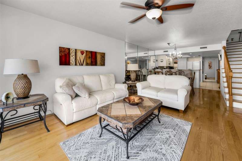 Under contract-accepting backup offers. PRICE ADJUSTED TO $399,900! Contemporary Key West Style Townhome in the ELITE Waterfront Community of Tara Cay Sound North! SPACIOUS 4 BR, 4 BA, 2228 SF Townhome built in 1997 that is just steps to the North Village Pool! THIS PROPERTY IS BEING SOLD FULLY FURNISHED! Nestled in a serene and private treed area, this newer townhome offers the perfect blend of tranquility and modern living. The lush greenery in your backyard provides an ever-changing natural backdrop, making every season a picturesque experience. Step inside to find spacious interiors with an abundance of natural light, thoughtfully designed to offer comfort and style. Whether you're relaxing on one of the back patios or hosting friends in the open concept living space, this home is your oasis of peace and sophistication. Impeccably maintained with GLEAMING Wood Flooring throughout (Tile in the wet areas), Double Ensuite on the upper level, main level Chef’s Kitchen overlooking a huge Great Room and a lower-level Family room / possible 4th bedroom! Enjoy the OVERSIZED one car garage, workshop for the hobbyist, extra storage AND additional parking in the driveway! Tara Cay North Village in Seminole tucked away and private with only one way in and out! Enjoy the Heated In-ground Pool just steps away out back and 9 docks to fish, launch your kayak or park your own boat - now this is PURE PARADISE! Once inside, walk up the wood steps to the main level featuring a light and bright Kitchen which is the HEART OF THE HOME that has plenty of counter and cabinet space, a SUN-FILLED Great room where daily Living and Dining will be a pleasure - the main living area, and the kitchen are perfect for the cook who doesn’t want to be separated from family and guests! Additionally, there is a sizable main level bedroom & bath – perfect for the guest or visiting family member! The wood flooring throughout including the steps enhances the elegant feel and is minimal maintenance! There is an air of GRACIOUS FORMALITY in the Living / Dining Room combination where you can entertain in uncrowded comfort & forgotten elegance returns to mealtime. There is a large, covered balcony off the Living room providing seclusion where you can get away without going away! The upper level consists of Two (2) ENSUITE bedrooms with soaring vaulted ceilings, separate sitting / study areas and sun-filled bringing in the wonderful Florida sunshine! Both upper-level bedrooms have their own sitting area, two walk-in closets and are spacious – all providing “suite retreat” after a long day. The lower level offers a Bonus / Recreation room (could be a 4th bedroom) with your own full bath! Just outside the sliding glass door is a tree shaded, private lower-level patio that provides sanctuary after a long day! Make this RESORT-STYLE Waterfront Community that is pet friendly with water access, community boat docks, Heated Pool & Spa, loads of green space and less than one mile to the Gulf of Mexico, your new home! Enjoy some of the lowest HOA fees in Pinellas County - included are water, sewer, trash, yard maintenance, basic cable & internet, pool & dock maintenance! Tara Cay North Village is a community of 132 Townhomes in a PARK-LIKE setting! Zoned for TOP RATED Seminole schools & close to EVERYTHING including the beach! Resort-style Living All Year Round!