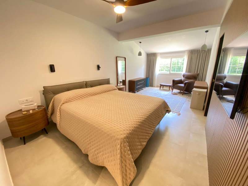 Nestled in one of the most exclusive communities of Sotogrande Alto, this renovated villa is a perfect example of modern design and functionality, ideal for those seeking to live elegantly in an environment of absolute tranquility. The property is situated on a 1,005 m² plot and stands out for its meticulous design and high-quality finishes. With spacious and bright areas, this home features three bedrooms designed to provide maximum comfort, two contemporary-style bathrooms, and a living room that invites relaxation with large windows that seamlessly connect the interior with the exterior. The open-concept kitchen is equipped with state-of-the-art materials and appliances, ideal for daily use as well as for hosting social gatherings. The exterior of the villa offers a large garden that provides the possibility to further personalize the property, such as constructing an independent en-suite bedroom, perfect for guests or as additional space. A private swimming pool can also be added, creating an authentic sanctuary of luxury and comfort. Located in a gated community that ensures privacy and security, this villa enjoys a privileged location near the best services in Sotogrande: exclusive golf courses, elite sports clubs, and top-tier dining options. Designed for those who value quality, style, and flexibility, this villa is a unique opportunity to enjoy a customizable property in the heart of Sotogrande Alto. Do not hesitate to contact us for more information.
