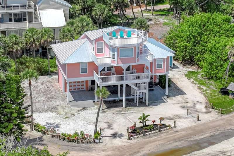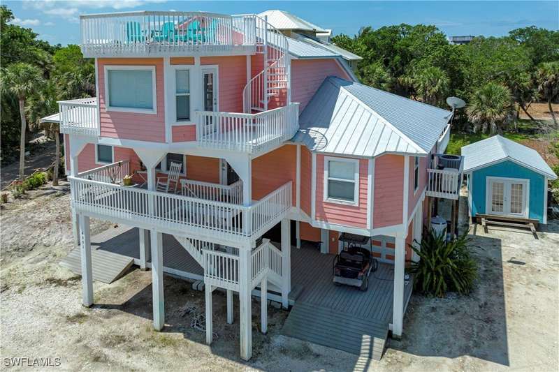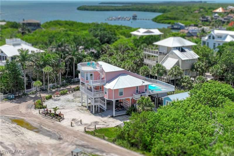 Welcome to "Paradise Palms" on North Captiva. A quick ferry ride gets you to a tropical paradise, leave your troubles & worries behind. Come see this beautiful turnkey home that has been professionally decorated, so it's ready immediately for your pleasure or for continued rental income. This custom home is one of the few on the island with its own private pool, located on the living level, don't have to walk downstairs to enjoy pool fun or to cook on the grill. Access straight off the kitchen, primary bedroom & one of the guest bedrooms. 3 bedrooms PLUS a private den located on its own level, easily can be used as 4th bedroom if needed. From this den, walk up to the sky deck and take in the 360' views of the Gulf of Mexico, Cayo Costa & Pine Island Sound. No paved roads, no traffic jams on this island as it's a golf cart community only. North Captiva is a barrier island with 5 miles of beautiful white sandy beaches, no crowds! The majority of the island is a State Park, which you can enjoy at no cost. Whether you want to sit and relax poolside, or on your private gorgeous beach, maybe want to grab a kayak, paddle-board or load up a golf cart, it's days of fun for all. There's plenty of experienced Captains that you can hire for experiencing world class fishing as well. Compared to other places around SW Florida, this place has so much to offer you. This property has also been successful in the rental market and the seller's great management team is ready and willing to continue to work with new owners, should this be an investment/income producing property for you. They'll have the house ready to go with personal grocery shopping, so all you have to do is to start your vacation!