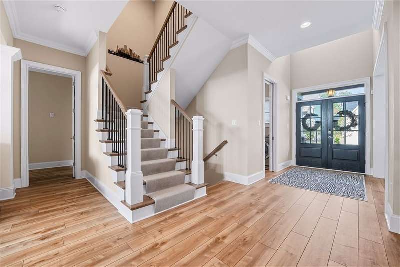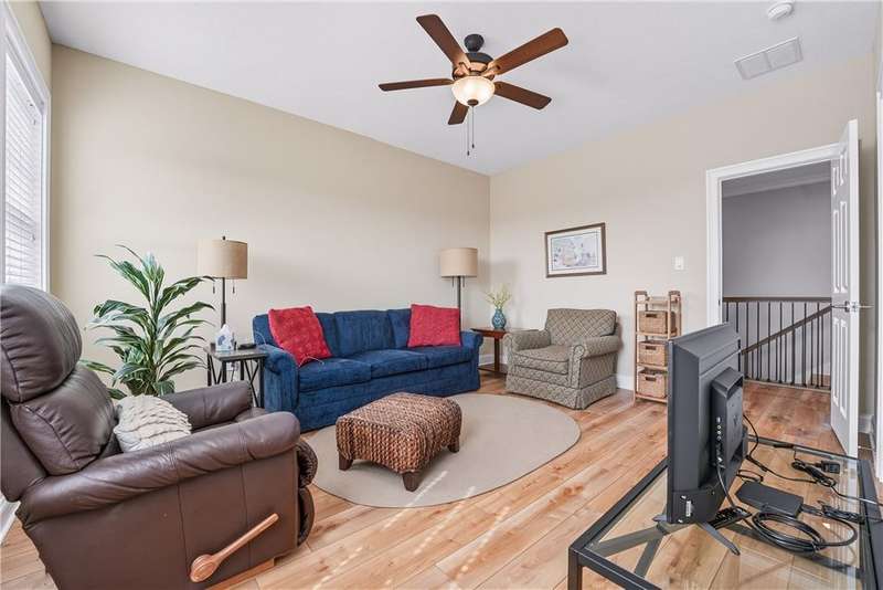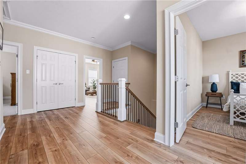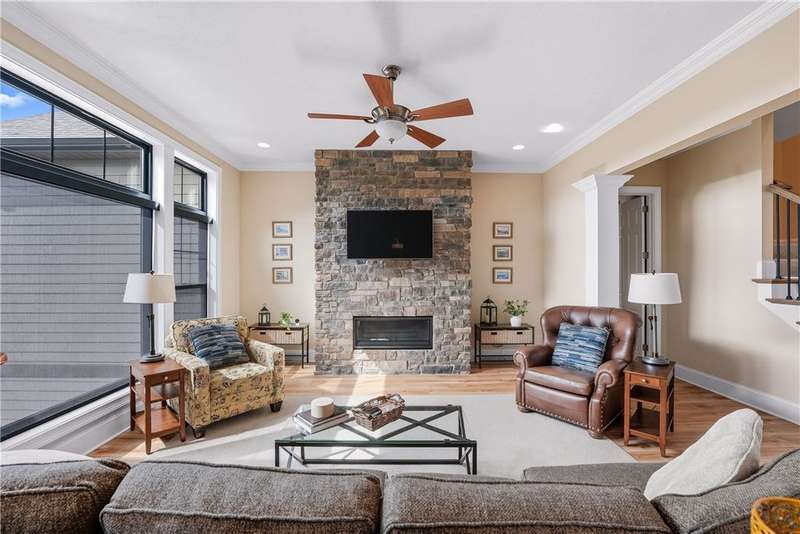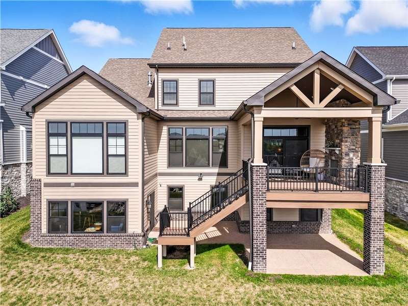 FIRST FLOOR Owner's quarters in Low maintenance section at Laurel Pointe. Brick and Hardie board exterior. Enter the covered porch experience hardwood throughout, grand 2-story entry 10 ft ceilings plus wall of windows providing dynamic views. A private Study/Living room then transverses into large Entertainers Kitchen exhibiting abundant designer cabinetry, stainless appliances, range hood, convection oven/microwave, large center island, spacious dining area. The family room includes stone FP, paddle fan/ abundant recessed/natural light. Experience Owner's suite with quartz counter tops, soaking tub, custom ceramic shower and large walk-in with built-ins. Second floor has three additional large bedrooms, one on suite, jack/jill bath and flex room. Partially finished walk-out lower level, 9 ft ceilings abundant natural light providing additional living/workspace for use. Experience sought after accessible lifestyle, Butler County taxes plus Infinity's innovative design/quality/value