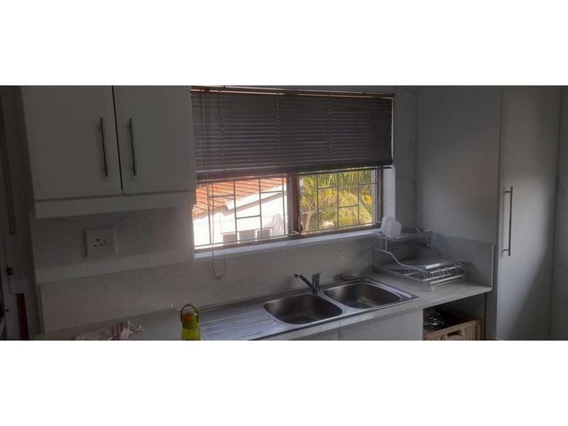 This recently renovated house off Umhlanga Rocks Drive is in mint condition and tastefully furnished with built in cupboards, and comes with curtains, beds, a dining room set with cabinet, lounge suite, washing machine , undercounter oven, hob, extractor, and an aircon in the main bedroom and another large unit that serves the lounge, dining room and kitchen.. The house has 2 bedrooms with headboards, 2 bathrooms, 1 ensuite with a shower and the other with a bath tub, lounge, open plan dining room and kitchen. The solid dining room set is an 8 seater with an extendable table. There is a breakfast nook and stools catering for 4 people. The patio doors from the lounge opens up into the front balcony. The house is fully tiled. The property has prepaid electricity and water meters with a wi-fi connection available. Situated in a fully developed and established cul de sac, this is an ideal home for a small family looking forward to a safe and tranquil location that is close to the La Lucia, Gateway and the Sunningdale shopping malls. The exterior of the property is currently being redecorated and will be ready for occupation on the 1st September. At R12 850 rental per month this is real value for money