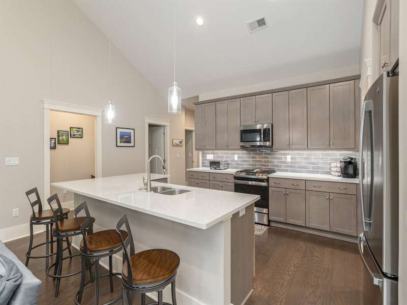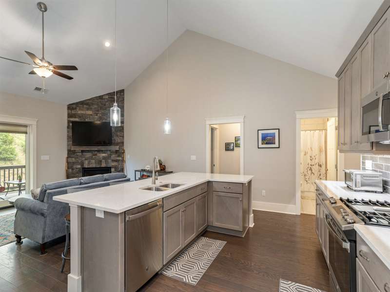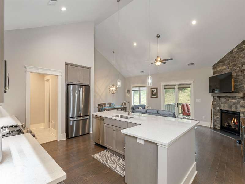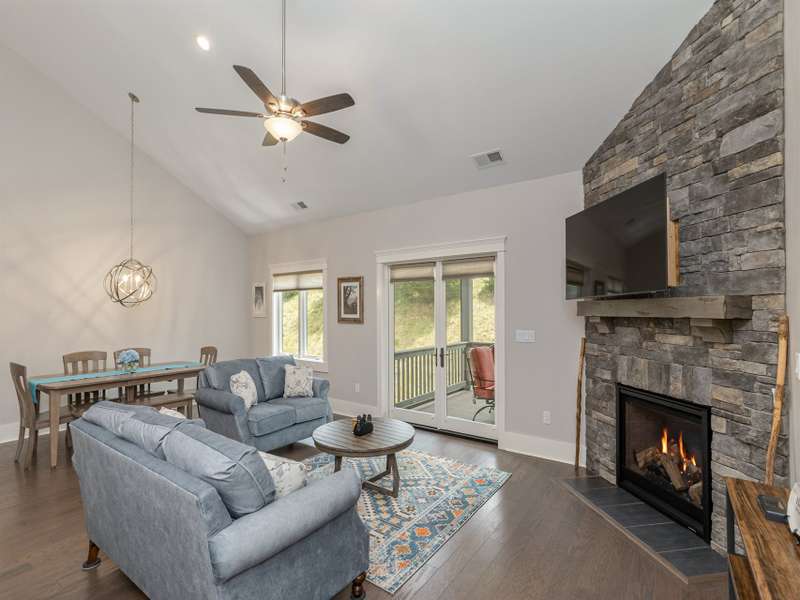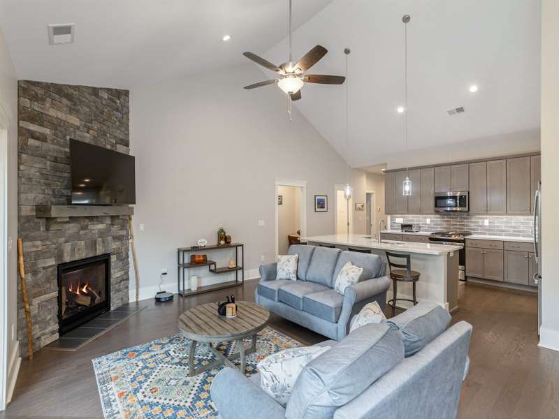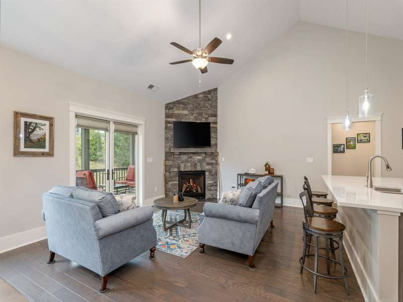 Experience the epitome of modern living in this beautifully maintained townhome, ideally situated for effortless access to the Sports & Fitness Center, inviting outdoor heated pool, and charming community garden. The open-concept layout, featuring gleaming wood floors, ensures seamless flow for both entertaining and daily life. Prepare culinary delights in the sleek, contemporary kitchen, boasting a large island, walk-in pantry, and premium GE Profile appliances, all illuminated by elegant recessed lighting. Unwind by the cultured stone fireplace under a vaulted ceiling, or enjoy tranquil moments on the relaxing screened-in back porch or welcoming open front porch.Beyond your doorstep, discover the unparalleled amenities of this award-winning community, rated one of America's Top 50 Best Master-Planned Communities by Where to Retire Magazine. Enjoy the vibrant Clubhouse with its library, meeting/card rooms, and gather around the fire pit by the stream-fed fishing pond. Embrace an active lifestyle with a semi-private 18-hole Golf Course, tennis, pickleball, bocce ball, and a plethora of social activities. Conveniently located near the charm of Brevard, the amenities of Hendersonville, and the allure of South Asheville, with a grocery store just moments away, this home truly offers the best of Western North Carolina living.