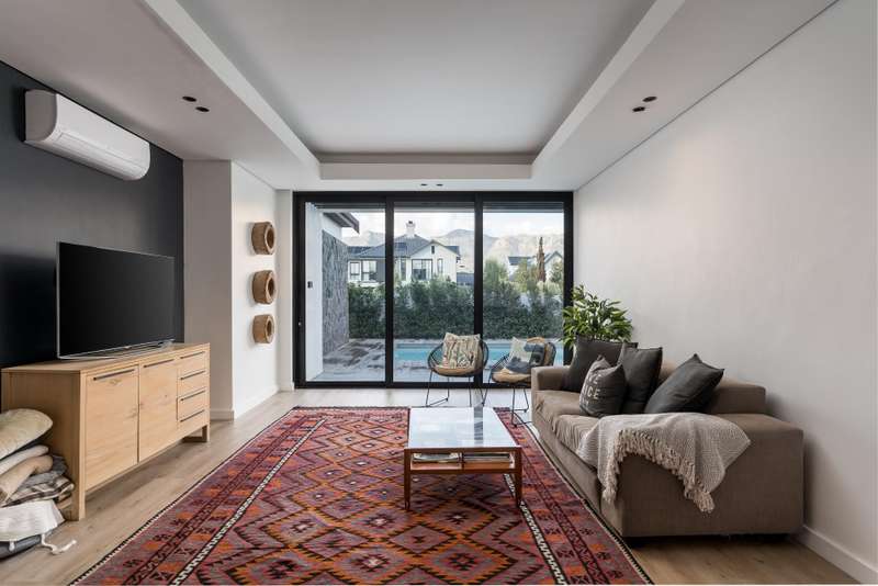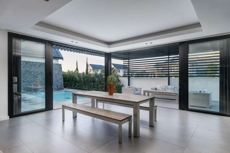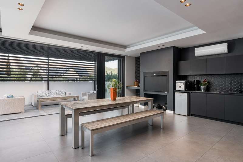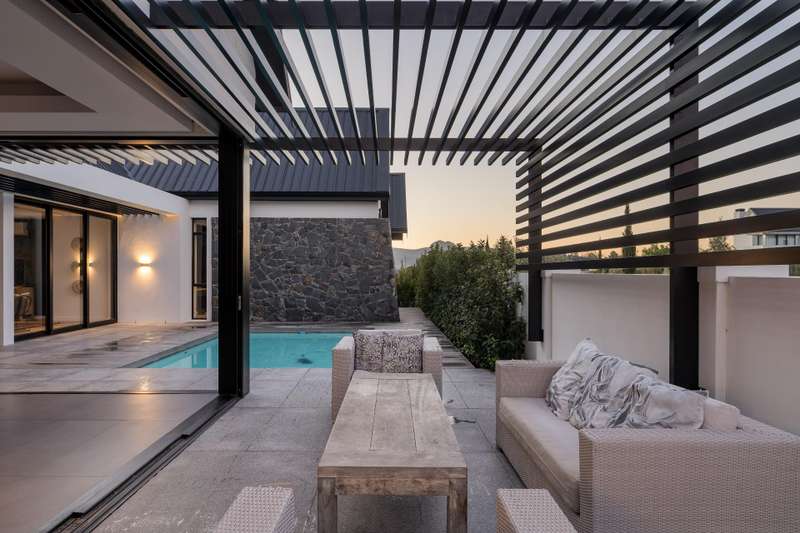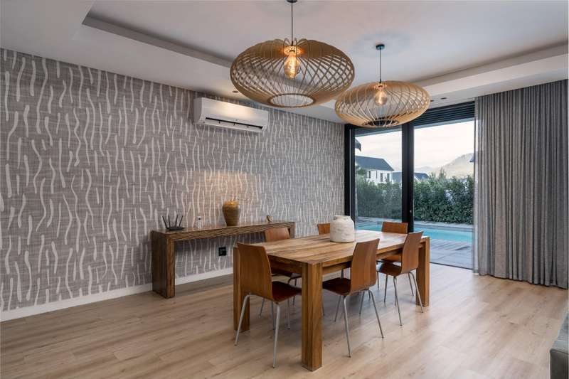 Nestled in the prestigious and secure Val de Vie Estate, this contemporary five bedroom single-story home offers the perfect blend of modern luxury and comfort, all while enjoying spectacular views all around. Located in the tranquil La Vue area, this property is within walking distance to nearby parks and play areas, making it an ideal setting for family living. The estate is renowned as one of the safest in Africa, providing peace of mind for you and your loved ones. Open-plan living with an elegant design that promotes seamless flow and natural light. Equipped with solar and battery back up for energy efficiency. A dedicated workspace for productivity or quiet reflection is next to the cozy pajama lounge to unwind and relax with family or friends. The modern kitchen features top-of-the-line appliances and ample counter space, over looking the indoor braai area, making it perfect for hosting gatherings or enjoying intimate meals. Dive into luxury with a pristine pool that offers a serene spot to cool off or enjoy outdoor entertainment. Whether you?ÇÖre enjoying the beautiful surroundings, hosting friends, or retreating for a quiet evening, this home is designed for a lifestyle of comfort and ease.