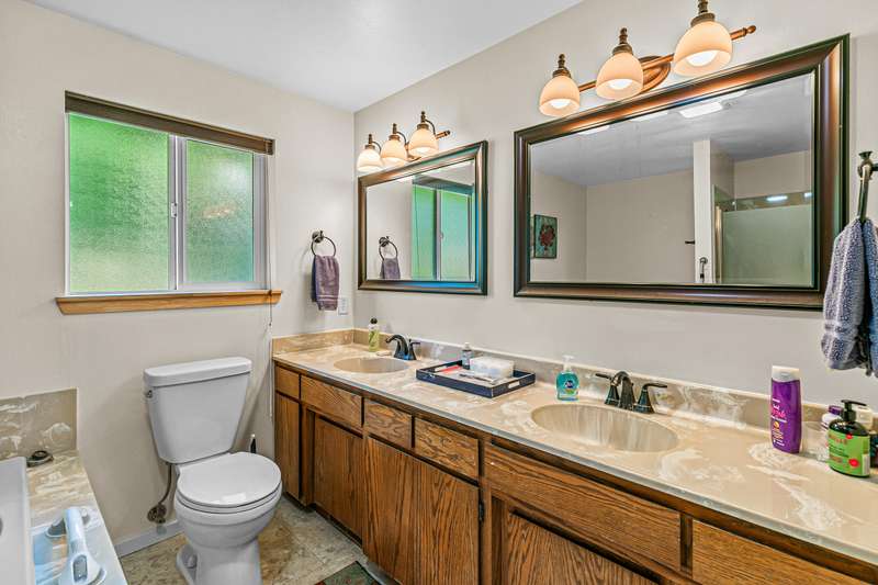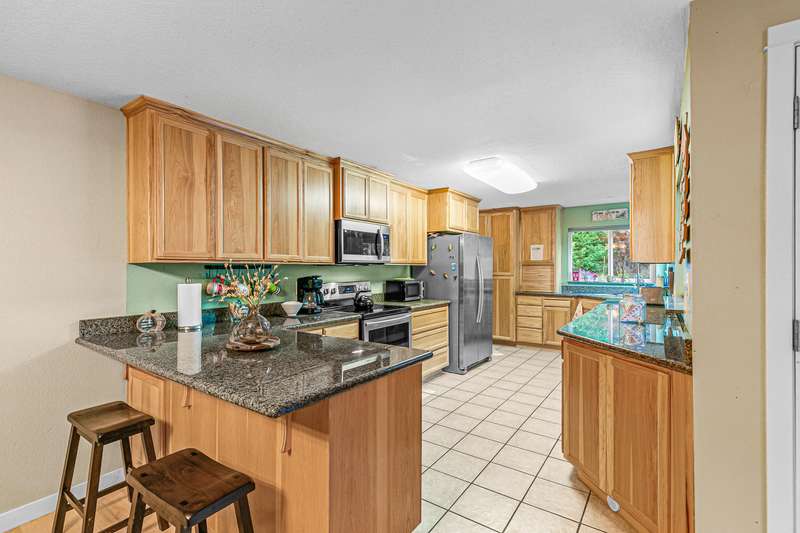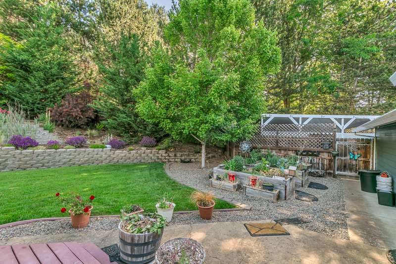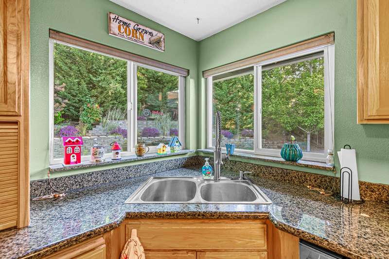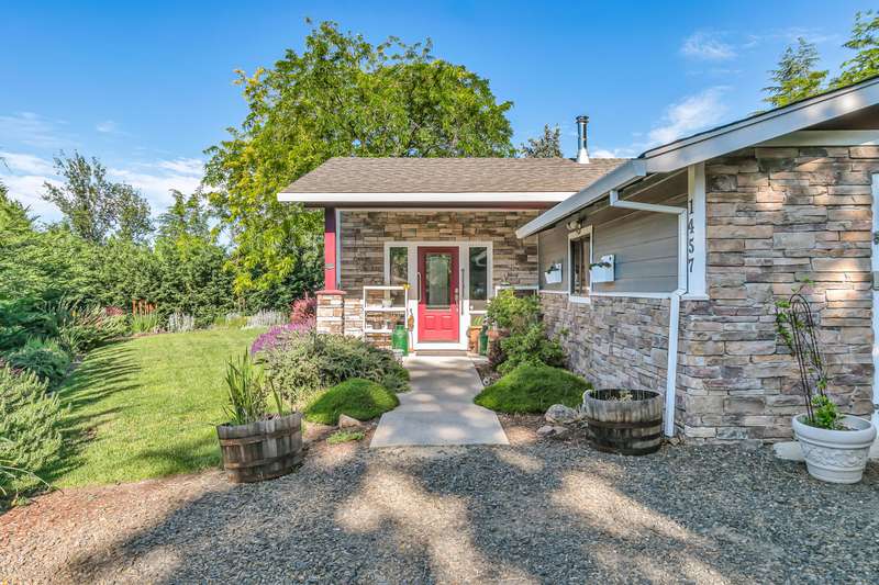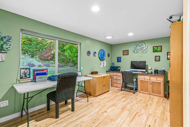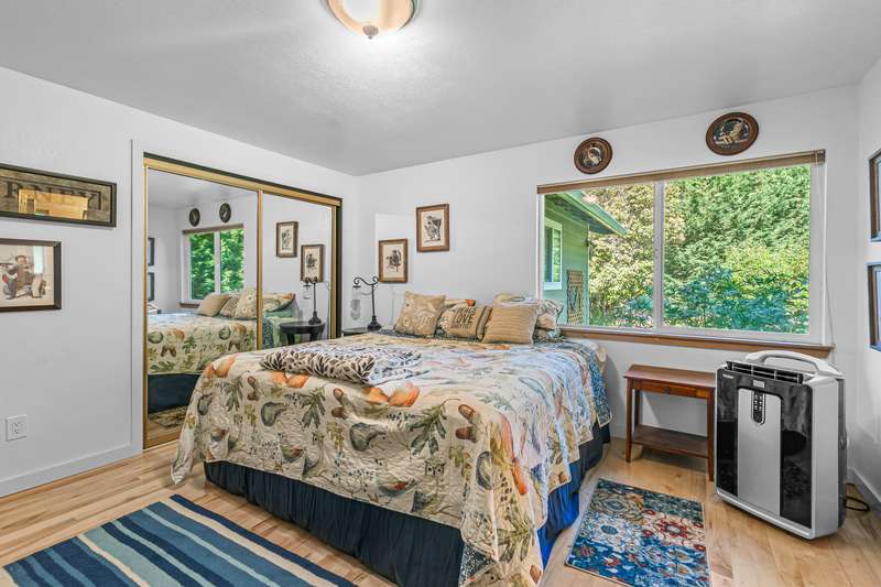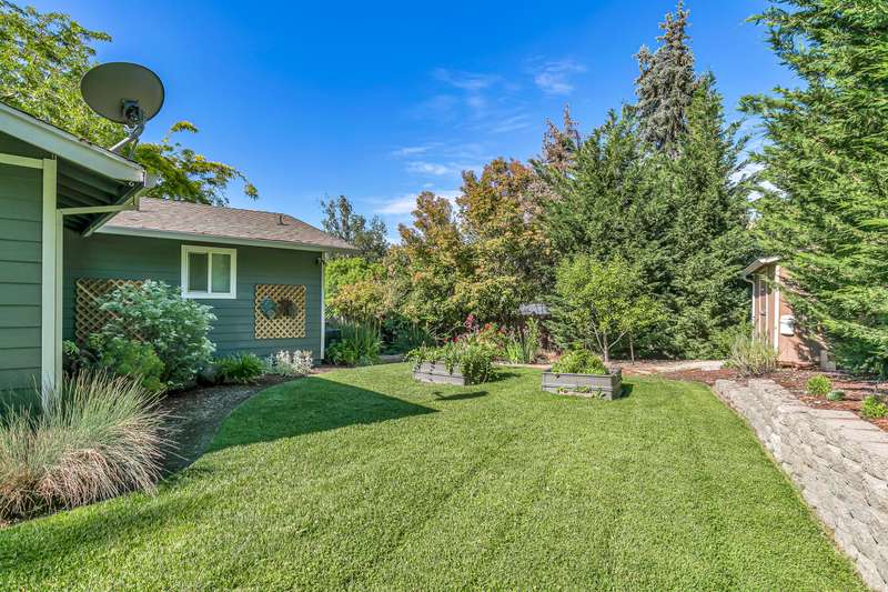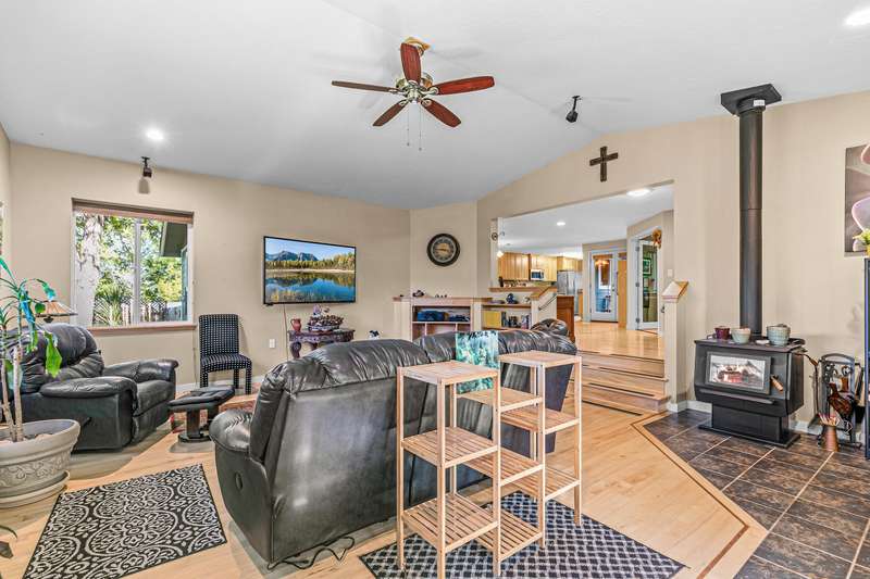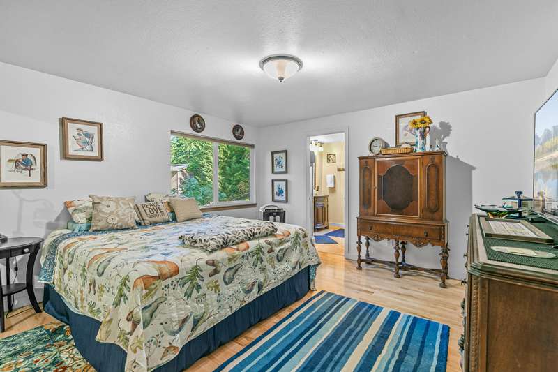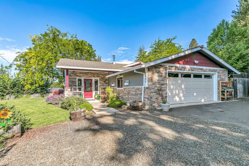Hard to find, 4 bedroom 3 full baths plus office, home in East Medford. Tile entry, beautiful maple floors, great room with speakers wired in the ceiling, ceiling fan, and certified Blaze King wood stove. The dining area has French doors out to the deck and is convenient to the kitchen that boasts hickory cabinets and pantry with pull-outs, granite counters and tile floors. The primary suite has a walk-in closet, jetted tub, and cultured marble counters with double sinks. There are three other bedrooms (one with ensuite bathroom) and a third full bathroom. Cabinets line the hall and there are upper cabinets in the utility room. The landscaped back yard is a great place for barbecuing and entertaining. Situated on a secluded .45 acre flag lot in a desirable established neighborhood.