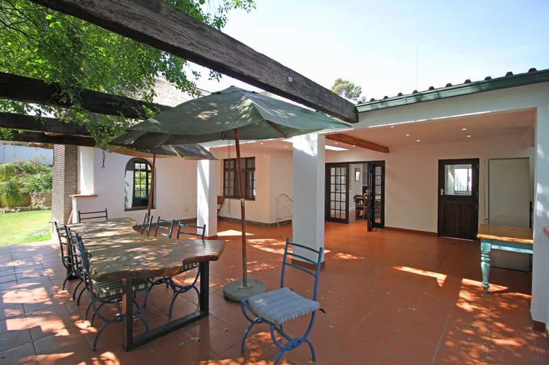 Embrace the charm of country-style living in this beautifully restored 3-bedroom farmhouse tucked away in the heart of Craighall Park. A rare combination of timeless character and modern convenience, this home offers everything from rustic elegance to entertainer’s delights — all on a generous 1,399sqm stand. Key Features: Farmhouse Appeal: Original thatch roof, cottage pane windows, and wooden flooring retain its authentic farmhouse charm. Grand Entrance Hall: A striking feature that sets the tone for the home. 3 Spacious Bedrooms – All En-Suite: The upstairs master suite with walk-in closet, Juliet balcony, and private ensuite. Two north-facing downstairs bedrooms with ample cupboard space, both with ensuite bathrooms. Modern Bathrooms: With gas geysers for efficiency. Multiple Living Areas: Spacious lounges with a wood-burning fireplace, cigar/reading lounge, and an inviting dining area. Chef’s Kitchen: White cabinetry, black granite tops, central dark wood island, SMEG gas stove, skylight, and direct access to a sunny breakfast courtyard. Entertainment Ready: Expansive covered patio with built-in braai, flowing to a landscaped garden with mature trees, tranquil water feature, and sunny courtyards. Wine Room: Cleverly tucked beneath the staircase for connoisseurs and collectors. Separate Cottage: Income-generating or ideal for extended family — complete with bedroom, built-in cupboards, kitchen, lounge, and bathroom. Work From Home Studio: Private outside office/studio with its own entrance. Garaging & Parking: 4-car garage plus ample secure parking. Garden Paradise: Established trees, colourful flowerbeds, water-wise design, and peaceful koi pond/water feature create a serene outdoor escape. This one-of-a-kind property combines modern practicality with the romance of farmhouse living. Perfectly located close to top schools, major routes, and sought-after amenities, it’s the ideal sanctuary for families and entertainers alike. Contact us today to schedule a private viewing and experience the lifestyle this home has to offer.