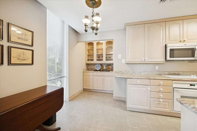 Lovely, lower level one bedroom with views of the trees in River Oaks. Open living/dining area with parquet floors that open to a large balcony that faces North and East. Light and bright kitchen with granite countertops, window and a wet bar for entertaining. Corner unit that gets lots of natural light. The maintenance fee pays for all utilities including electricity and water. Heated pool, party room, three guest rooms, two workout areas and beautiful gardens on almost 3 acres of land.