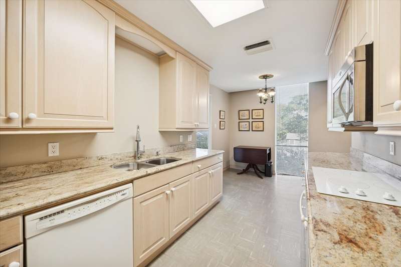 Lovely, lower level one bedroom with views of the trees in River Oaks. Open living/dining area with parquet floors that open to a large balcony that faces North and East. Light and bright kitchen with granite countertops, window and a wet bar for entertaining. Corner unit that gets lots of natural light. The maintenance fee pays for all utilities including electricity and water. Heated pool, party room, three guest rooms, two workout areas and beautiful gardens on almost 3 acres of land. Per Management, a washer and dryer may be installed per restrictions.
